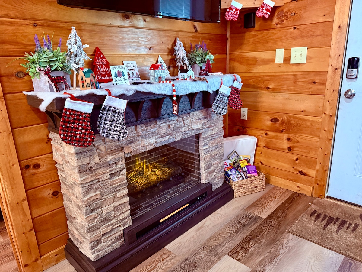 ✅Hot Tub ✅Mountain views ✅Firepit (propane provided) ✅Electric Fireplace ✅Wet room (large soaker tub and shower) ✅Blackstone Grill (propane provided) ✅Large covered porch w/outdoor dining ✅Brand New Modern-Compact Cabin (600 sq ft) ✅ Private Gated Communityw/Security ✅ Community Pool (seasonal), Tennis Courts, Pickleball Court & Playground! ✅1 Bedroom (King Bed)/1 Bath w/sofa bed (queen) ✅Washer/Dryer, Dishwasher, Oven, and Fridge! ✅Vintage board games ✅Cornhole Boards ✅ Record Player