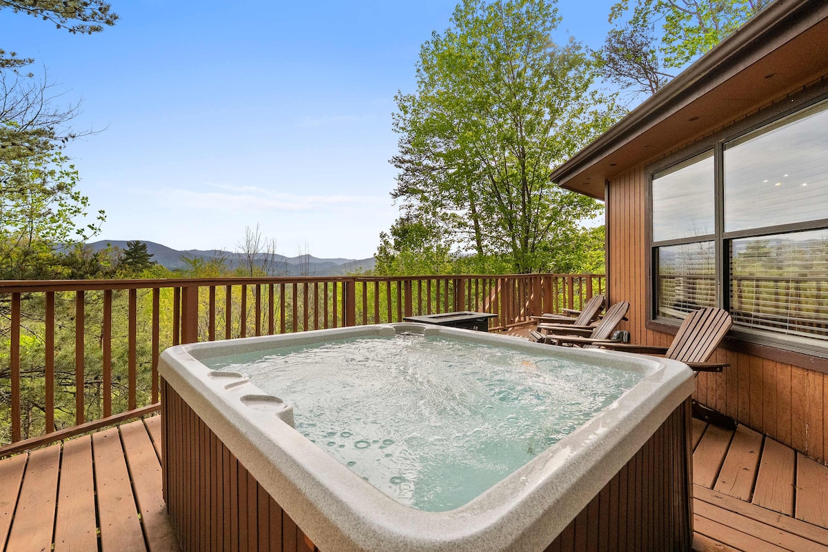 带热水浴缸、游戏室和烧烤架的山间小屋