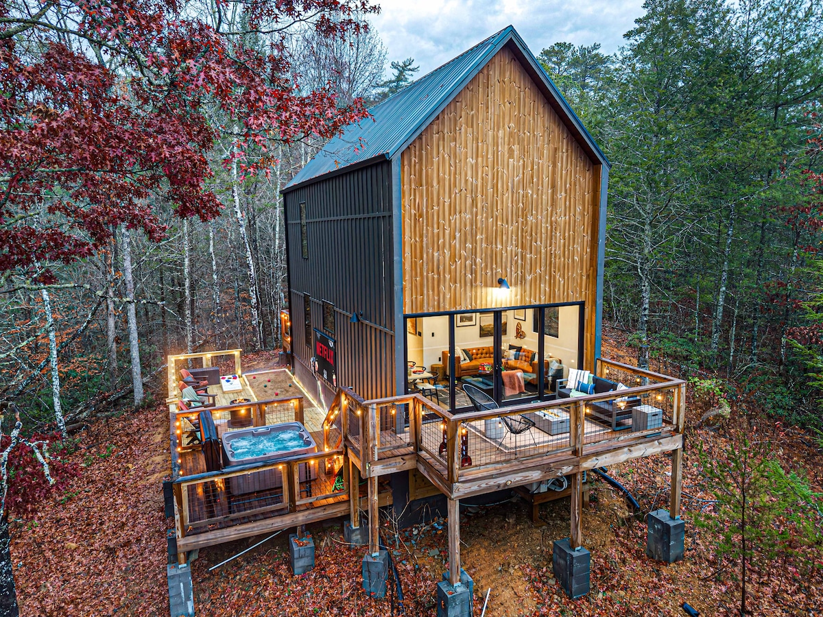 ✅Hot Tub ✅Mountain views ✅Firepit (propane provided) ✅Electric Fireplace ✅Wet room (large soaker tub and shower) ✅Blackstone Grill (propane provided) ✅Large covered porch w/outdoor dining ✅Brand New Modern-Compact Cabin (600 sq ft) ✅ Private Gated Communityw/Security ✅ Community Pool (seasonal), Tennis Courts, Pickleball Court & Playground! ✅1 Bedroom (King Bed)/1 Bath w/sofa bed (queen) ✅Washer/Dryer, Dishwasher, Oven, and Fridge! ✅Vintage board games ✅Cornhole Boards ✅ Record Player