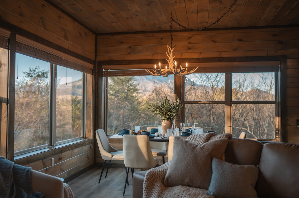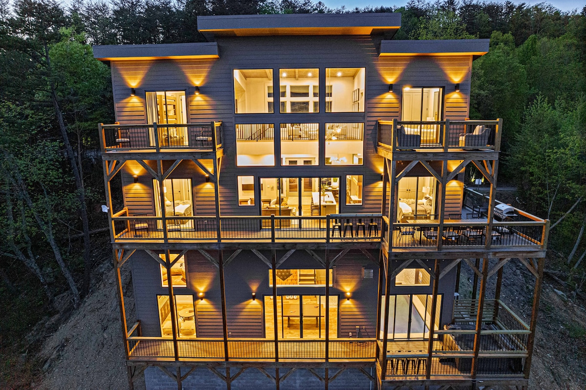 Experience unparalleled luxury at Windows to the Mountains, a modern marvel nestled in Gatlinburg with stunning views of Mt. Leconte. Chalet features a rooftop deck with a modpool, movie theater, and exquisite outdoor amenities. Enjoy a fully-equipped kitchen, cozy living room with a vapor fireplace, and a master suite with a spa-like bathroom. Complete with a coffee bar, game tables, and a sauna, Windows to the Mountains offers an exclusive retreat for discerning guests seeking a lavish escape.