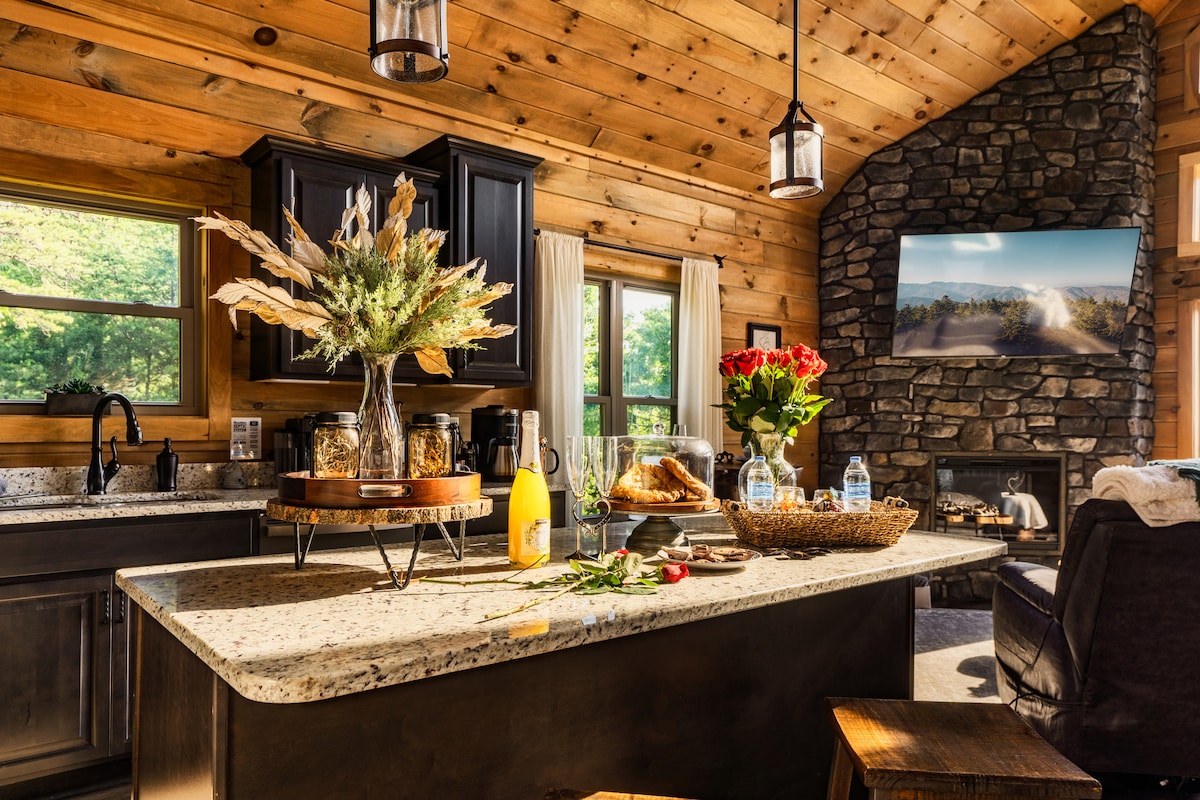 *2 miles to Gatlinburg and Pigeon Forge *Pool Table *Hot Tub *Bluetooth Jukebox *28" rain shower for two *Fireplace *King Size Bed *Queen sleeper sofa *55-inch Roku TV *Fast Wi-Fi *Jacuzzi Tub *Keurig and Drip *K cups and creamer *Privacy & Location *Robes *Luxury Bedding *Charcoal grill *Flameless candles *Romance package available($40) *Late check out 1pm($40) **Please note the cabin is tucked in the mountains. Some of the roads can be curvy and steep.