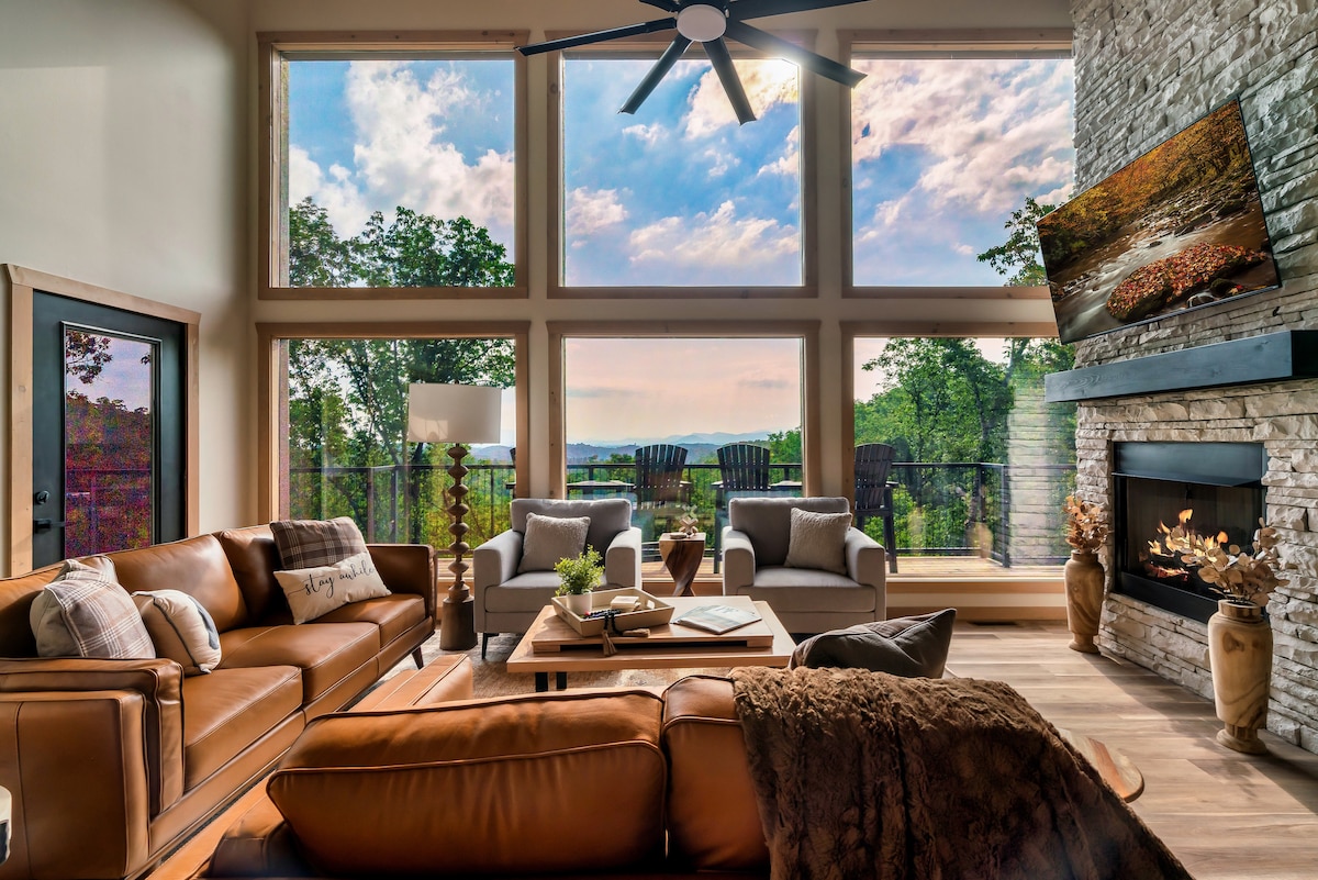 Your Elegant Mountain Adventure Awaits! Avalon Ridge is a breathtaking, private, modern cabin, perched high in the Smoky Mountains, with unparalleled views! The expansive bedroom features a stone fireplace and luxurious soaking tub, the woodland loft is surrounded by old-growth hardwoods, and floor to ceiling windows showcase the view from anywhere in the cabin! Enjoy sunrise from the breakfast perch, or unwind with a luxurious soak in the private hot tub. Reserve this mountaintop retreat today!