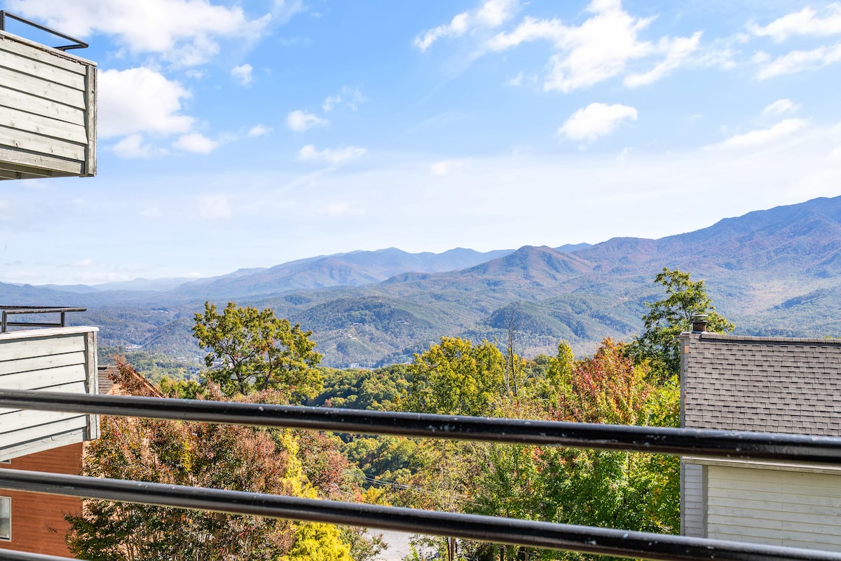 Enjoy the beautiful mountain views that the Smoky Mountains are famous for, Mountain View Getaway is the perfect vacation rental! Enjoy views of the Gatlinburg Golf Course in the 'fore'ground with a backdrop of the Smoky Mountains. Interior highlights, wood accents and mountain farmhouse-style decor with all new wood floors, a shuffleboard table, and smart TVs in each room. Luxuriate in a jetted bathtub in the primary suite. Gather on the balcony for an excellent view of the rolling mountains.