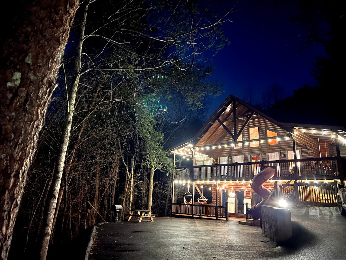 Escape to The Nocturnal Nest, a hidden gem 💎 tucked away amidst the beauty of nature🍃. This cozy cabin offers an idyllic escape for lovebirds celebrating milestones or simply for the fun of it🥰! Create your own luxurious paradise🍹🏝️at home with a personal theater, spacious outdoor patio with a fire pit, hot tub, and BBQ grill. 📍17 min to Pigeon Forge 📍25 min to Gatlinburg 📍57 min to Knoxville ✈️ 📍18 min to Dollywood 🎢 📍24 min to National Park 🌲 📍30 min to Ober Ski Mountain 🏂⛷️