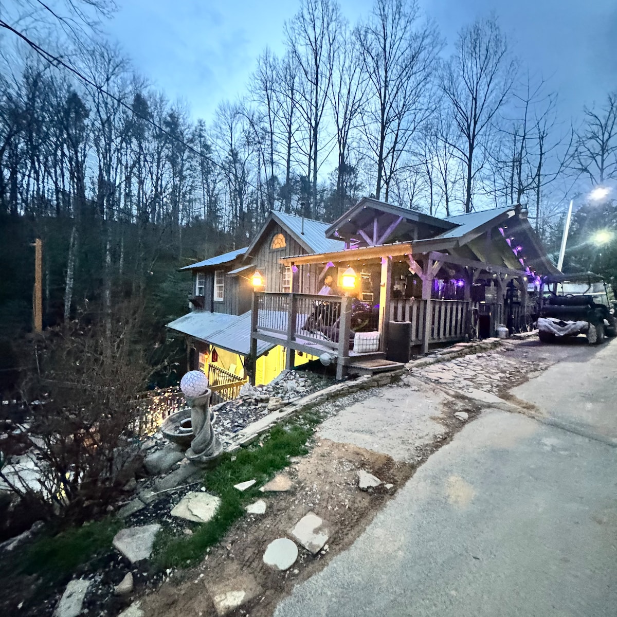 单层* 1英里长的私人车道* 篝火坑* 热水浴缸* 桑拿