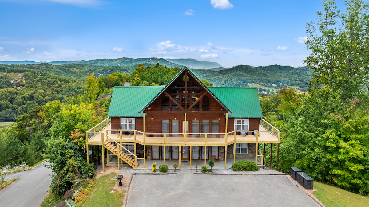 豪华小屋、景观、游戏室、热水浴缸、剧院!