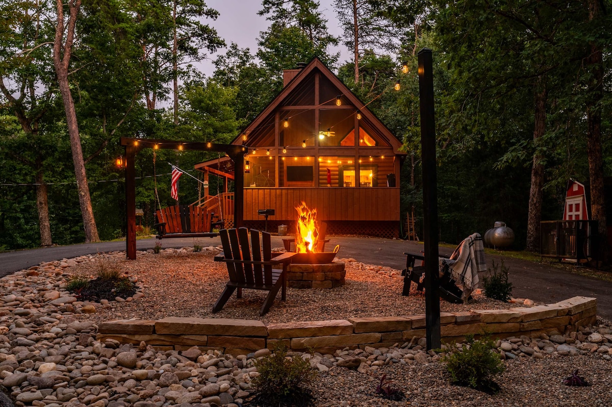 Escape to this eco-friendly A-Frame retreat, just minutes to GSMNP! Enjoy included activities like hiking, pedal boating, kayaking, and fishing on a private 2-acre stocked lake. Relax with EV charging, a cozy fire pit, charcoal grill, fully equipped kitchen, and in-unit washer/dryer. Plus, a kid’s play area, fishing docks, trails, and firewood are yours during your stay. 1.5 miles to Soaky Mountain Water Park. Sleeps up to 4 guests—no pets, please! Extra guests need approval and a small fee.