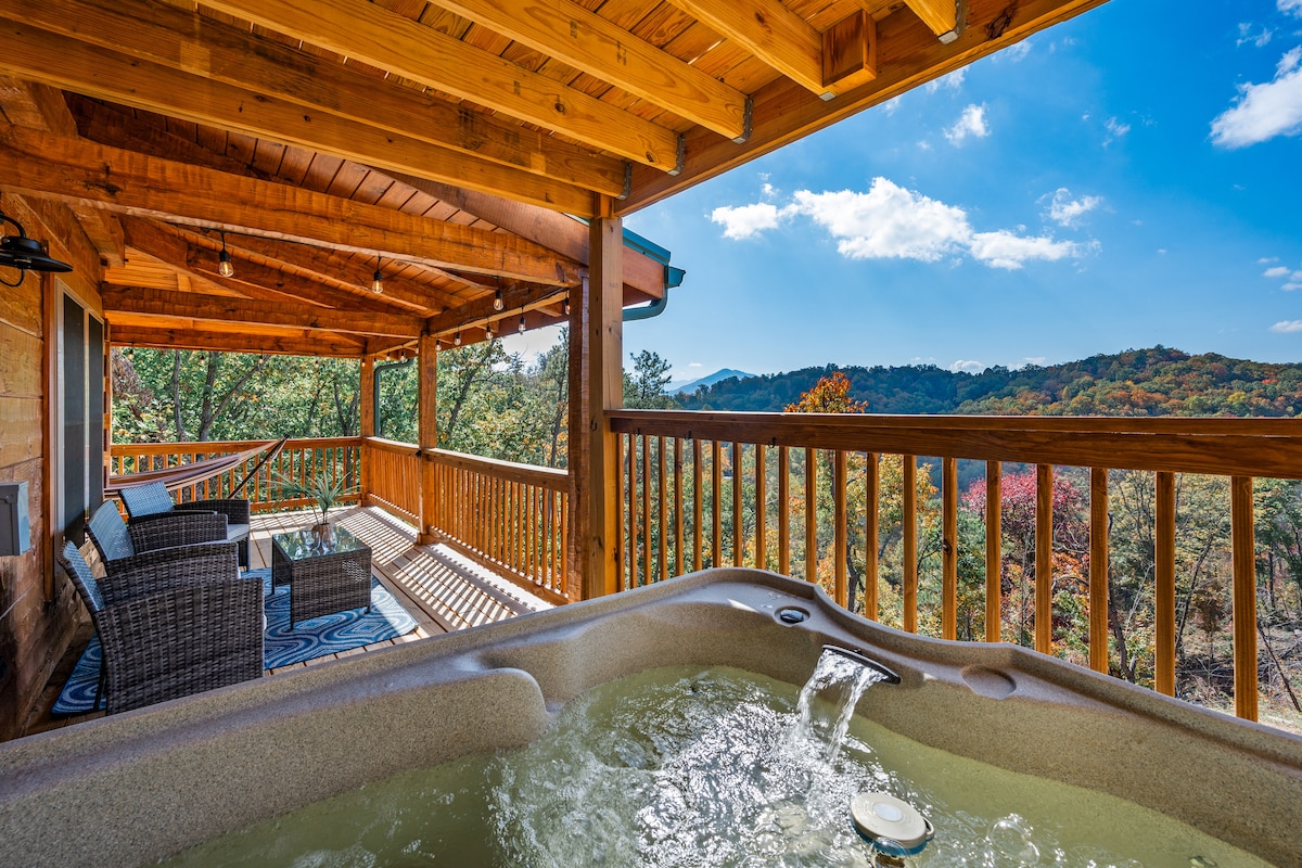 Escape to our private 2BR mountain cabin with stunning views, a hot tub, and a game room! Perfect for families or couples, this retreat comfortably sleeps 7 and is just 15 minutes from Dollywood & Pigeon Forge. Enjoy modern comforts like a fully equipped kitchen, high-speed Wi-Fi, and a cozy fireplace. Experience the perfect blend of serene mountain living and convenient access to top attractions. Your unforgettable Smoky Mountain adventure starts here!