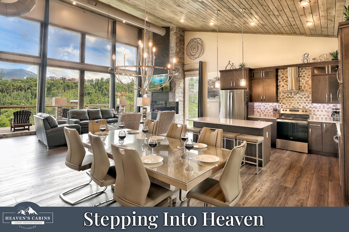 Experience unparalleled luxury at Windows to the Mountains, a modern marvel nestled in Gatlinburg with stunning views of Mt. Leconte. Chalet features a rooftop deck with a modpool, movie theater, and exquisite outdoor amenities. Enjoy a fully-equipped kitchen, cozy living room with a vapor fireplace, and a master suite with a spa-like bathroom. Complete with a coffee bar, game tables, and a sauna, Windows to the Mountains offers an exclusive retreat for discerning guests seeking a lavish escape.