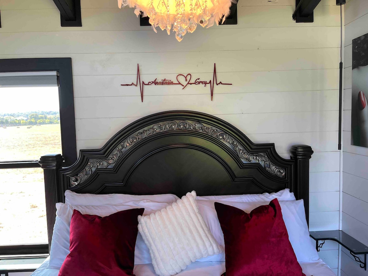Welcome to your romantic Red Room treehouse escape in Sevierville, TN. Our Anastasia & Grey Treehouse is Fifty Shades of Grey inspired, offering privacy, luxury, opportunities to explore your Red Room fantasies, & breathtaking views of the Little Pigeon River (via short path) & Great Smoky Mountains. Unwind in the hot tub, relax in plush robes on a massive modern king-sized bed with bamboo linens. Perfect for couples seeking a magical getaway. ⭑CONTACT US FOR SEASONAL DISCOUNTS⭑