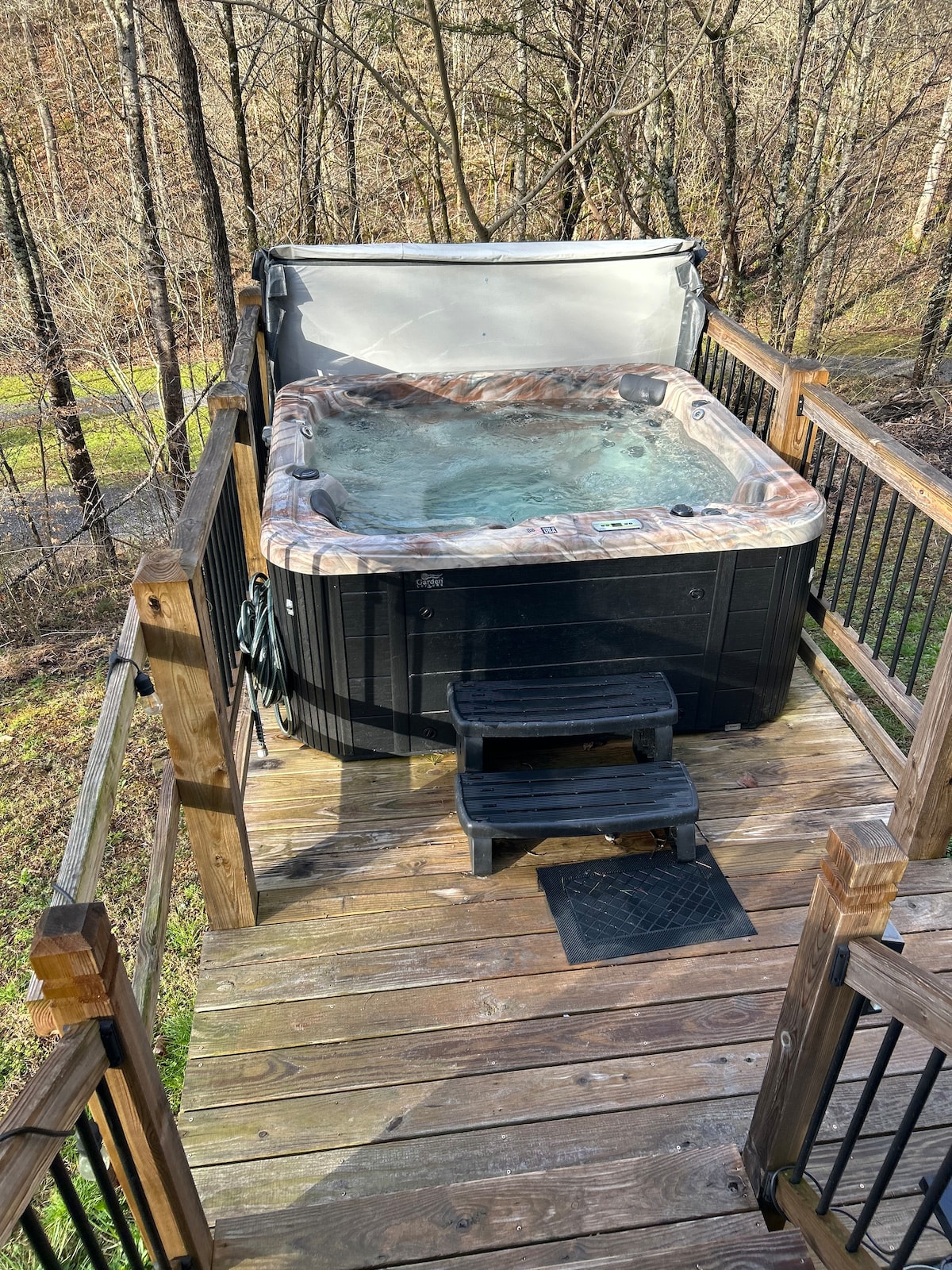 Enjoy the new tiny cabin in nature.Perfect for honeymoon,romantic getaway or small family trip,pet friednly.Tiny cozy cabin but yet big enough to comfortably accommodate up to 4 people.Separate bedroom and private back porch with the hot tub,gas firepit and outdoor sofa. Right off the highway.15 minutes to Pigeon Forge,no backroads. Drive local highway and avoid tourist traffic.Easy access to all the amenities. TN distillery across the street,local restaurants and groceries within 5 minutes.