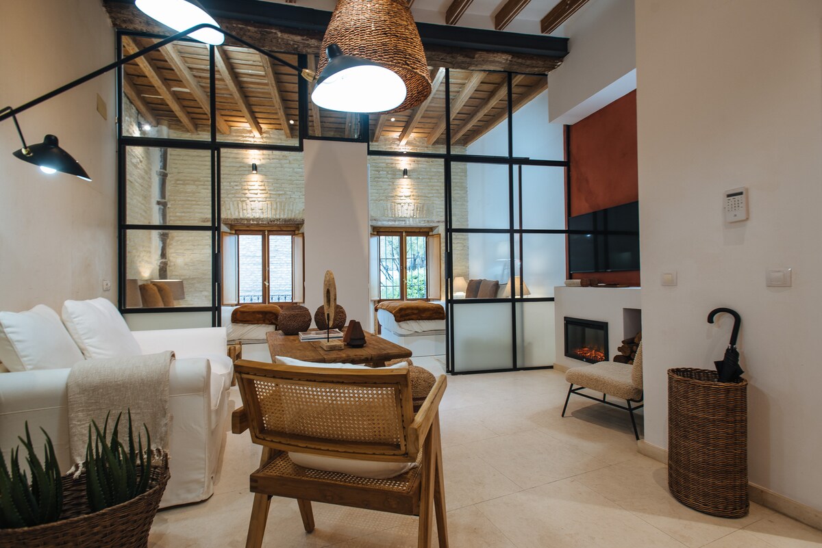 Apartment equipped with heating/air conditioning. Spacious, comfortable and perfect for the summer in Seville. It is built in an old house-palace completely restored and retains a 1-meter-wide exterior wall that insulates from heat and noise. Ideal if what you want is to be comfortable on your trip and live as if you were a Sevillian.