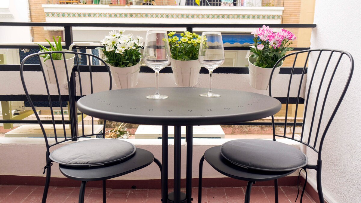 Apartamento de nueva construcción, muy luminoso gracias a sus 4 balcones y situado en una de las zonas más vivas de la ciudad, donde la convivencia entre los vecinos del barrio y los turistas, hará que te sientas como un sevillano más. Gracias a la ubicación céntrica de este alojamiento, tú y los tuyos lo tendréis todo a mano. A pocos metros podrás encontrar bares, restaurantes, supermercados, farmacias…etc.,