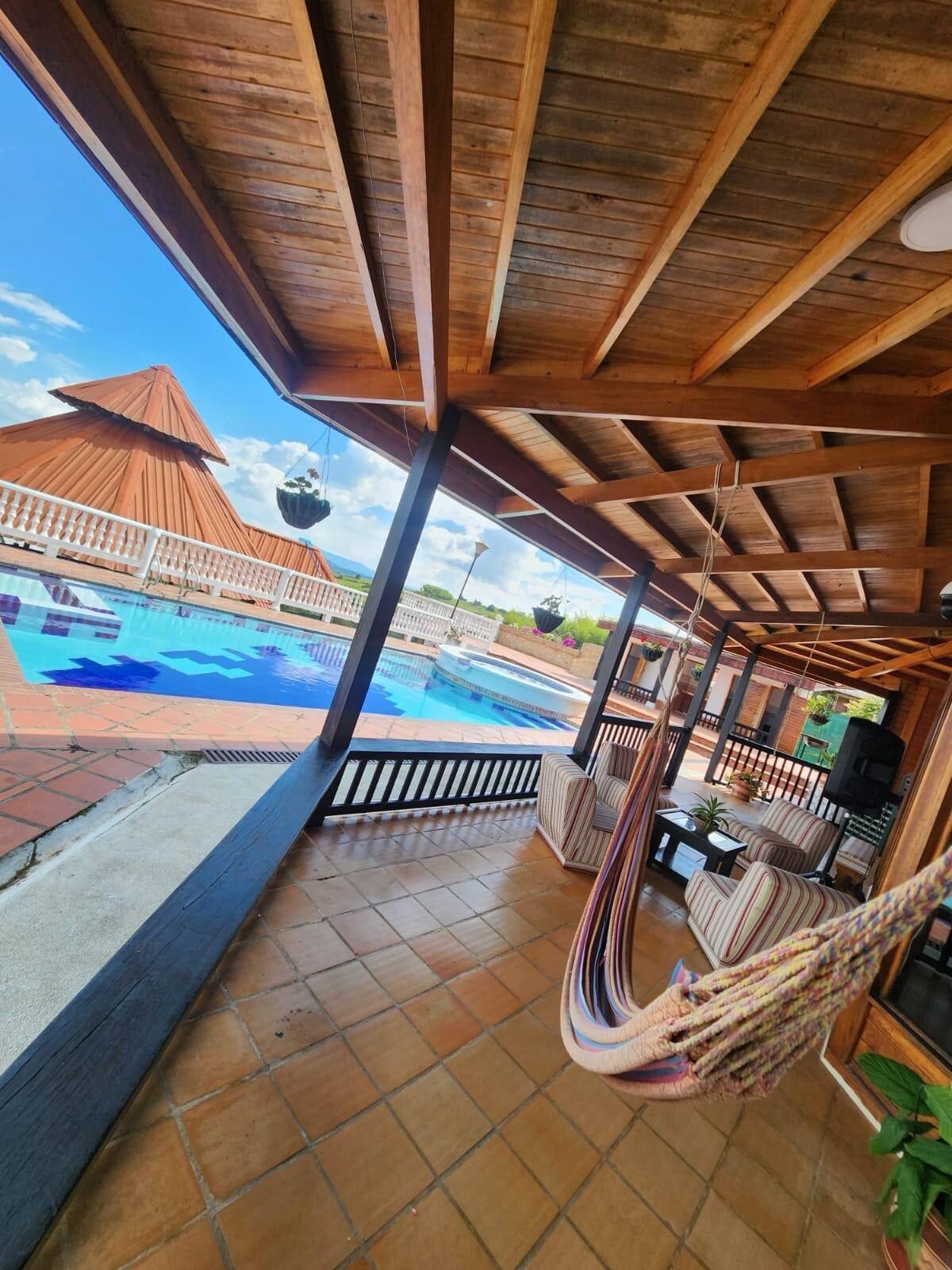 Gran hacienda de 50 hectáreas a 15 min del aeropuerto de Armenia, el lugar ideal para explorar El Eje Cafetero. Lindísima casa típica sobre un valle con una vista espectacular, río, piscina, guaduales centenarios, jardines, caballos, ganadería, ordeño, plantaciones, fauna endémica, cabalgatas, bicicleta, posibilidad de proveer alimentación completa*, organización de tours y más! No dejes tu viaje al azar. TopSpot® — 10 años de experiencia, confianza y estadías felices !