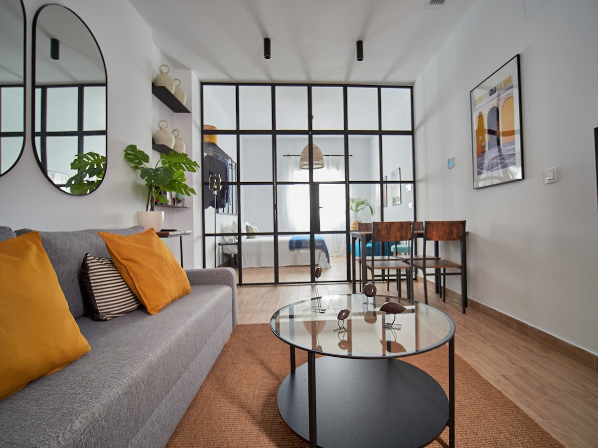 This well-equipped and cosy 45m2 flat is located in Seville, approximately 1 km from the centre. It is a well equipped flat with a style of decoration that you will love. It is a 10/15 min walk from the centre of Seville and the Santa Justa train station. You can also take a tour of the city's churches: there are several within 1 km, such as Iglesia de Santa Catalina. With capacity for 2 guests, here you will find everything you need for an unbeatable stay.