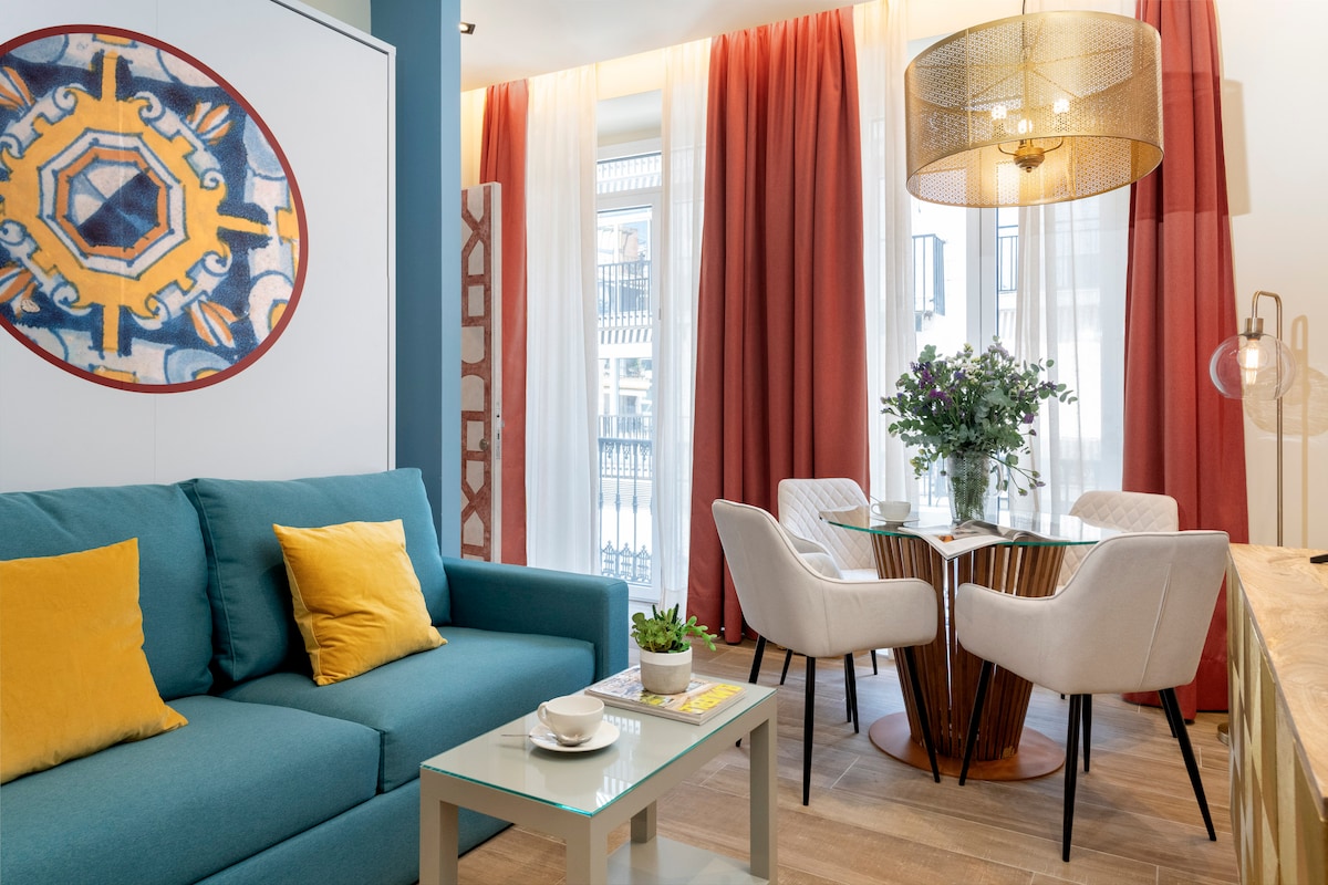 La Rosa de la Alfalfa apartments are located in a magnificent building in the historic centre of Seville, next to the Plaza de la Alfalfa. An extraordinary location to discover the main attractions of our city. They have been designed to offer the best comfort to our guests, taking care of all kind of details that will make your stay an unforgettable experience. All the apartments have one bedroom, a fully equipped kitchen, a comfortable living room with TV and a complete bathroom.