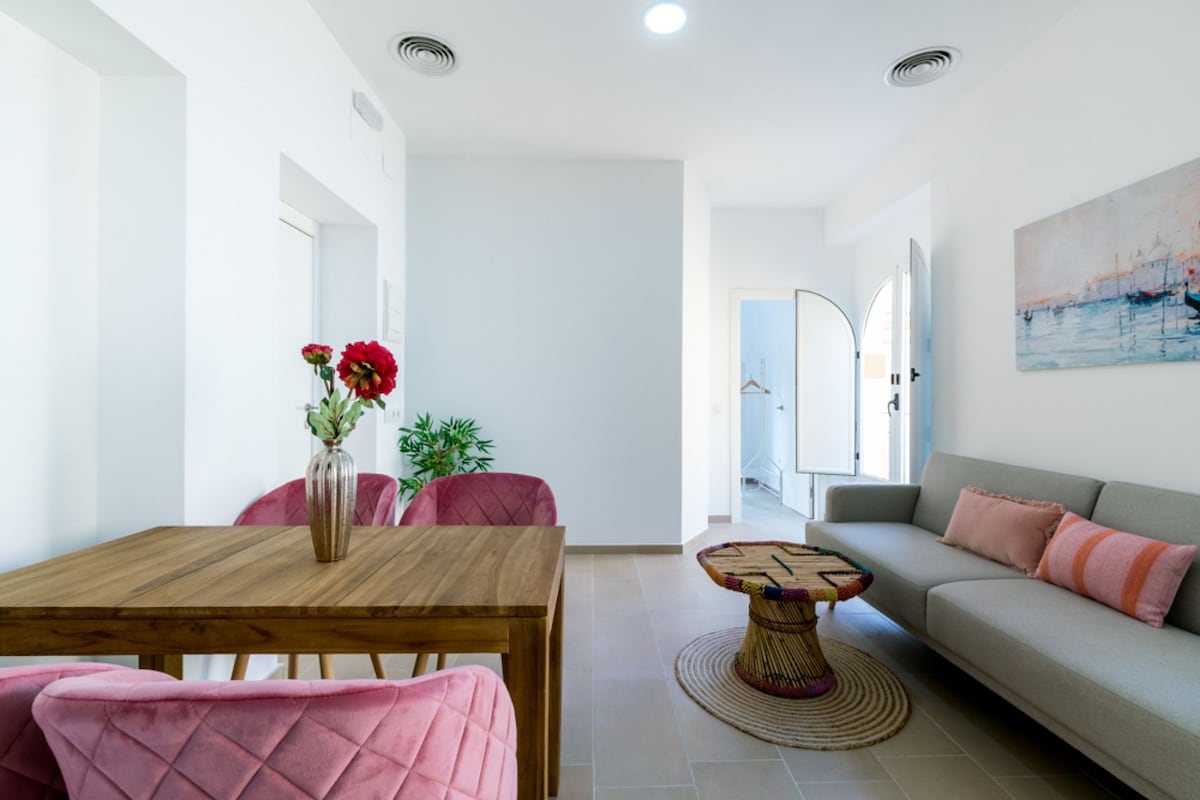 This beautiful flat is located in one of the main streets of Seville. In the centre of commerce and only a few minutes away from all points of interest. Our building has large balconies that let in natural light to enjoy the sunny city. The flat is completely renovated, equipped with everything you need for a wonderful holiday. Do not hesitate, come to the best flats in the city and enjoy Seville! We are waiting for you!