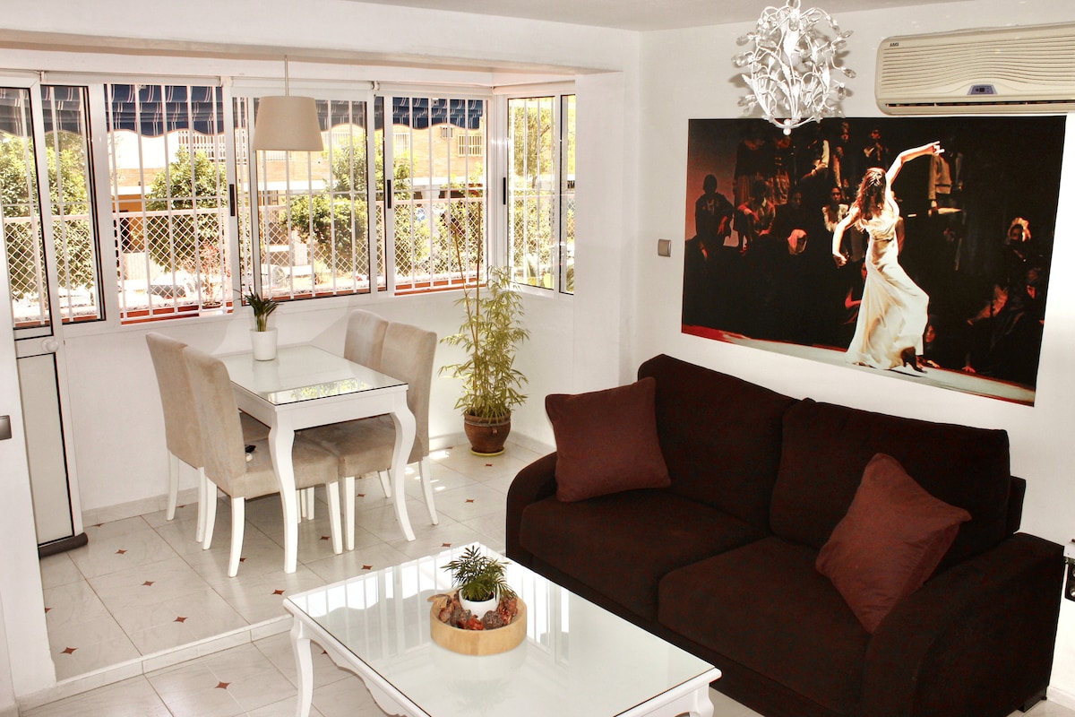 Modern fully equipped apartment. Located in a quiet street 2 minutes from Mercado Feria where you can find everything that Seville's gastronomy and nightlife has to offer. It has a large and bright living area where you will find the kitchen, dining room, sofa bed and full bathroom. The room has another integrated bathroom and is located in the quietest part of the building to have a good rest.