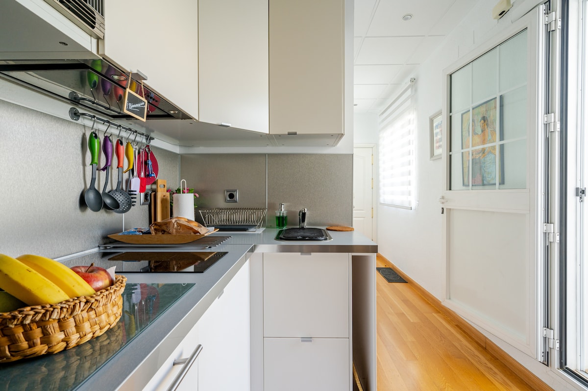 Apartamento muy luminoso, decorado con mucho estilo, cuenta con dos dormitorios, salón con cocina completa integrada, baño y ducha separados para facilitar su uso, AC frío calor. Ideal para dos parejas, pareja con niños, 3-4 amigos o dos personas que busquen independencia. Terraza con césped artificial. Supermercados, transportes y muchos servicios cercanos. A 12 min caminando de la estación del tren y parada bus aeropuerto y a 15-20 min andando del centro de la ciudad. Registro: VUT/SE/00050