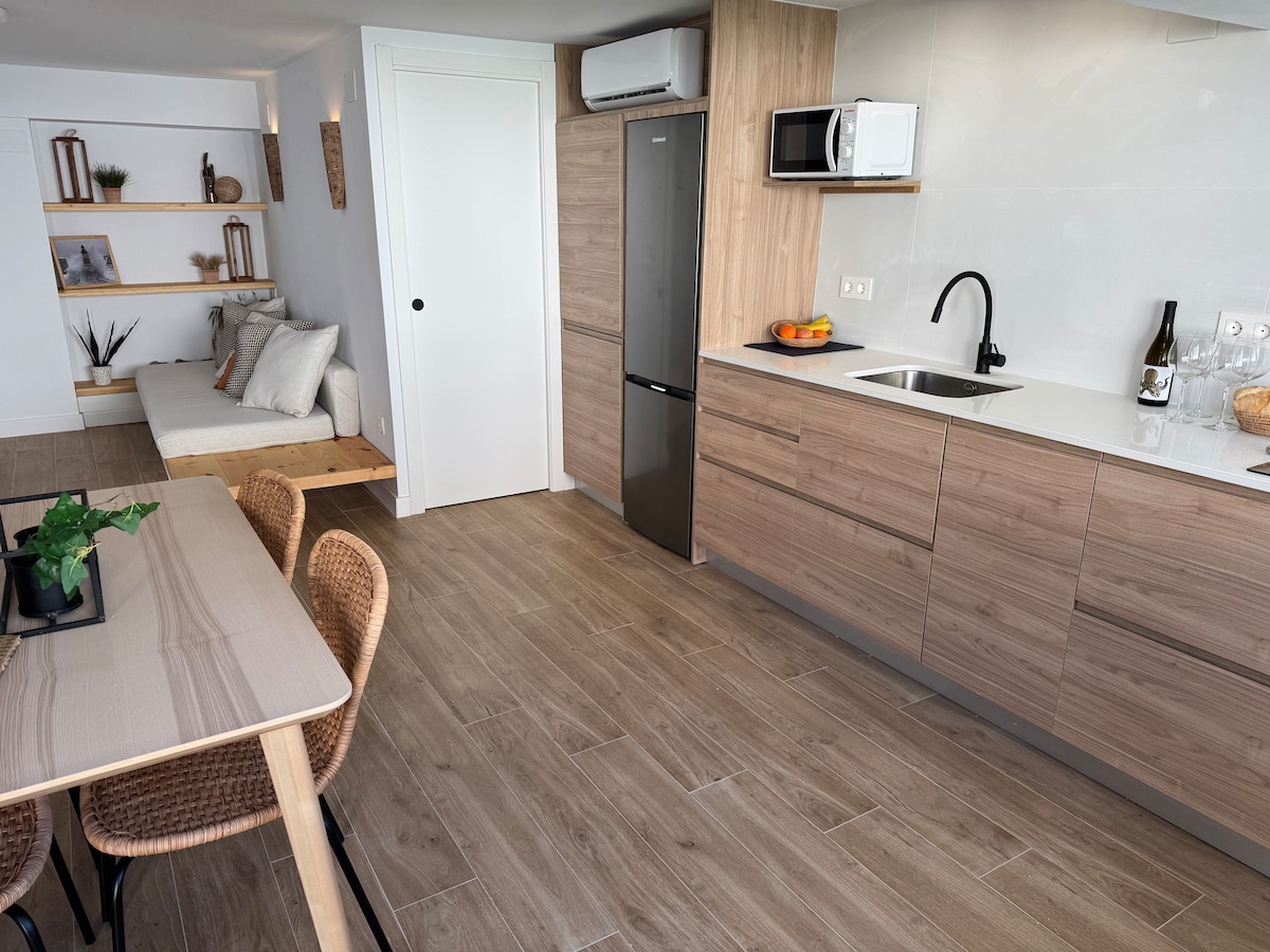 Estudio reformado junto al río Guadalquivir. Aire acondicionado split (frío/calor), amplia terraza con zona chill out, cama "queen" visco (150x190), wifi 600MB, Smart TV, área de teletrabajo, cocina totalmente equipada y baño con bañera! Muy luminoso y tranquilo (en una comunidad residencial), excelentemente comunicado (metro/bus/carril bici). Sólo a 10 MINUTOS A PIE del casco histórico, en el barrio más famoso de Sevilla, con amplia oferta de tiendas y restaurantes. Licencia: VUT/SE/06907