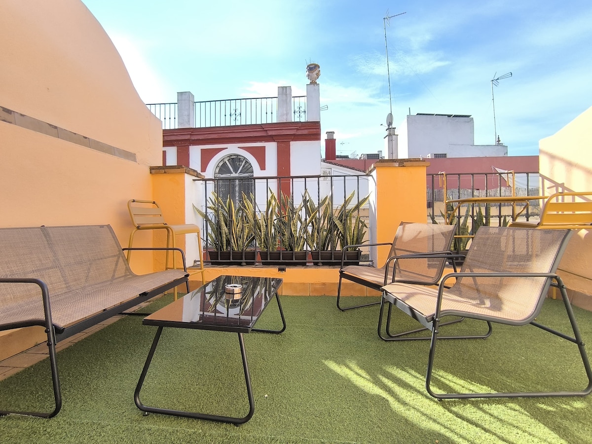 Casa Suink is an old town renovated house of apartments in the center of Sevilla. It has been recently renovated and it is located in the historic and commercial area surrounded by all the places of interest such as La Giralda or Setas. Duplex with terrace: It has two double bedrooms, two bathrooms, light and spacious living room with dining area and full kitchen, patio and wonderful terrace to spend the evening with a view of the Giralda in the distance. Air conditioning and high speed wifi.