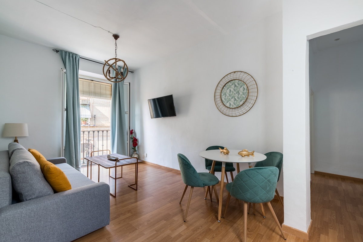 This beautiful flat is located in one of the main streets of Seville. In the centre of commerce and only a few minutes away from all points of interest. Our building has large balconies that let in natural light to enjoy the sunny city. The flat is completely renovated, equipped with everything you need for a wonderful holiday. Do not hesitate, come to the best flats in the city and enjoy Seville! We are waiting for you!
