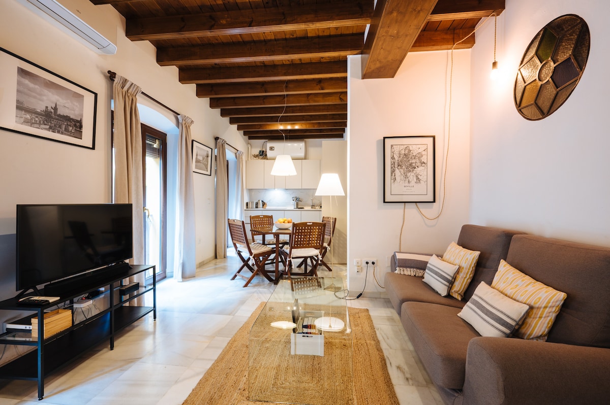 Fantastic loft-style apartment, fully renovated and undoubtedly in the best possible location in the heart of Seville. Situated between the Bullring and the Maestranza Theatre, you’ll be just a 5-minute walk from the city’s top attractions: The Cathedral, La Giralda, el Real Alcázar, Santa Cruz Quarter, Plaza Nueva, Plaza San Francisco, and the city's shopping area. You’ll also be only 2 minutes away from the Torre del Oro, the beautiful Guadalquivir River Promenade, and the Triana neighborhood.