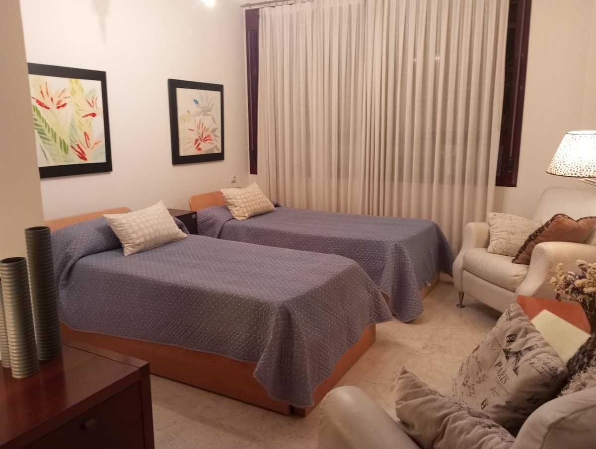 EN PLENO CENTRO DE SEVILLA: Auténtica casa sevillana, con gran patio, 3 plantas, 5 balcones y azotea con merendero. Conexiones cercanas a metro, autobuses (incluso aeropuerto), parkings públicos, y sobretodo, a 5 minutos de las famosas "Setas de Sevilla" y 10 de la Catedral. -PRECIOSA Y AMPLIA HABITACIÓN: con WIFI, TV, aire acondicionado (frío-calor), escritorio, con TODAS LAS COMODIDADES, cuarto de baño y cocina totalmente equipados. -FAMILIA CON PERRITA BUENÍSIMA, todos encantados de alojaros