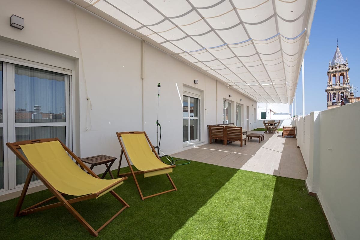 See our Penthouse featured in the magazine AD arquitectura y Diseño https://m.revistaad.es/decoracion/casas-ad/galerias/atico-restaurado-en-sevilla-airbnb/8603/image/622973 Beautiful Penthouse located in the center of Seville, few minutes from the main monuments. It is located in a recently restored cataloged building of the XIX century. It has two floors, with large terraces and a rooftop terrace with panoramic views over the city.
