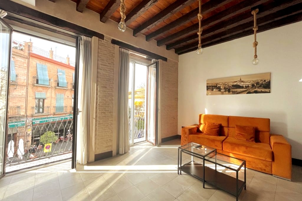 Magnificent first-floor apartment with 2 bedrooms and private access to a rooftop terrace. Located right next to the famous "Maestranza" Bullring and just a 3-minute walk from the Cathedral, it’s also conveniently close to the Torre del Oro airport bus stop. Fully equipped kitchen, 2 bedrooms, 1 bathroom, and an exclusive rooftop terrace on the third floor. Enjoy free late check-in with automatic access for a seamless arrival.