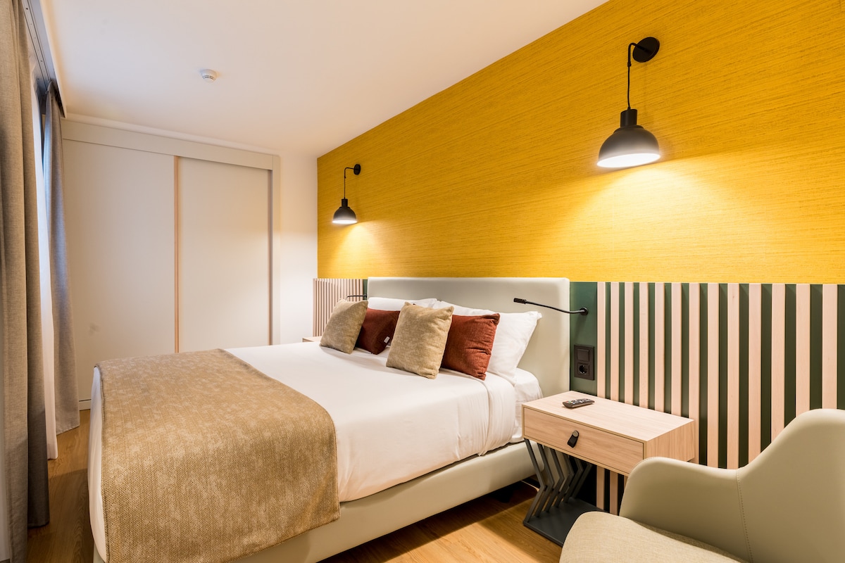 This 83 sqm apartment is ideal for up to 6 people. The space features comfortable king-size (180x200) and queen-size (160x200) beds, a spacious living area and a colourful private terrace. The living area evokes Mediterranean vibes, thanks to warm furniture colours and wooden dining tables. For maximum comfort, lay on the private terrace, hold a glass of tinto de verano and enjoy Sevilla’s warm nights. The apartment also includes an equipped kitchen and a spacious bathroom.