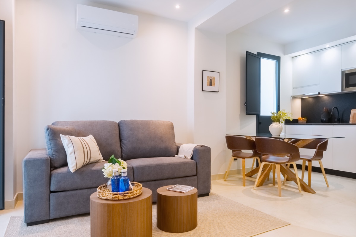 Apartment equipped with heating/air conditioning. Spacious, comfortable and perfect for the summer in Seville. It is built in an old house-palace completely restored and retains a 1-meter-wide exterior wall that insulates from heat and noise. Ideal if what you want is to be comfortable on your trip and live as if you were a Sevillian.