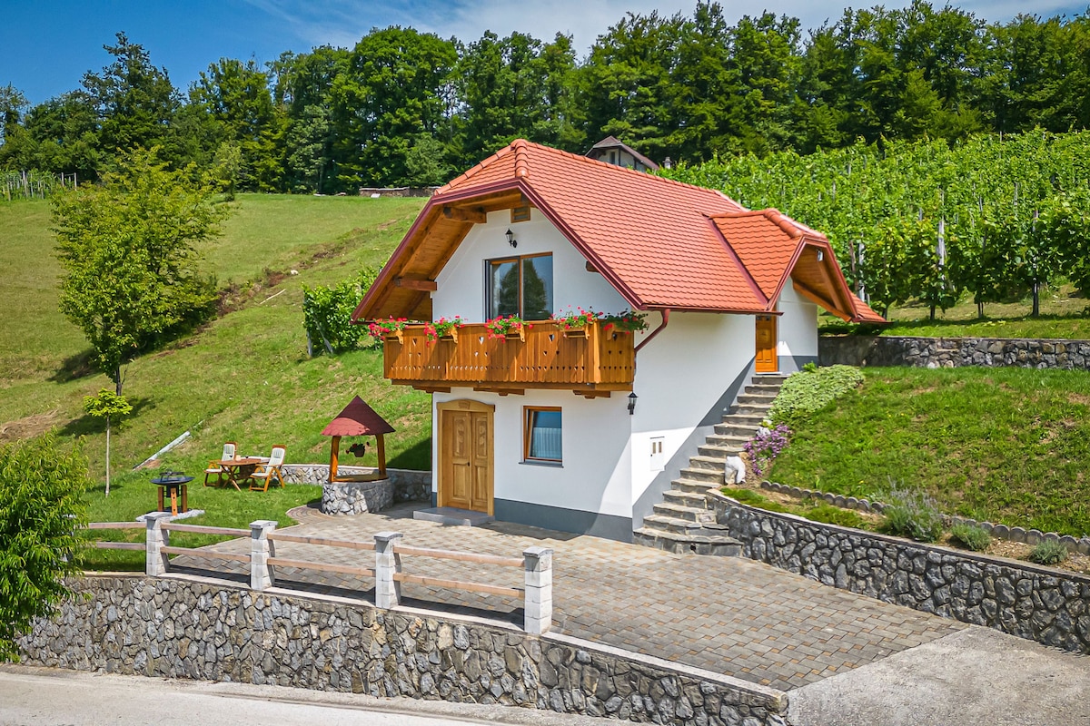 Country House Mirt is charming, newly build property. It has wine cellar with two floors. Classical style of construction, typical for vineyard culture, with beautiful details made by wood. Country House also feature a terrace and balcony with beautiful vineyard view on the hills of charming little village called Blanca. Country House is build on the sunny side of the hills, so you can enjoy in sunshine the whole day. Country House Mirt is located 2 km from little village Blanca and 6 km away from city Sevnica. Country House Mirt is beautiful accommodation with its refined details, which fulfil your every wish for relaxation and recreation in an elegant but comfortable way.