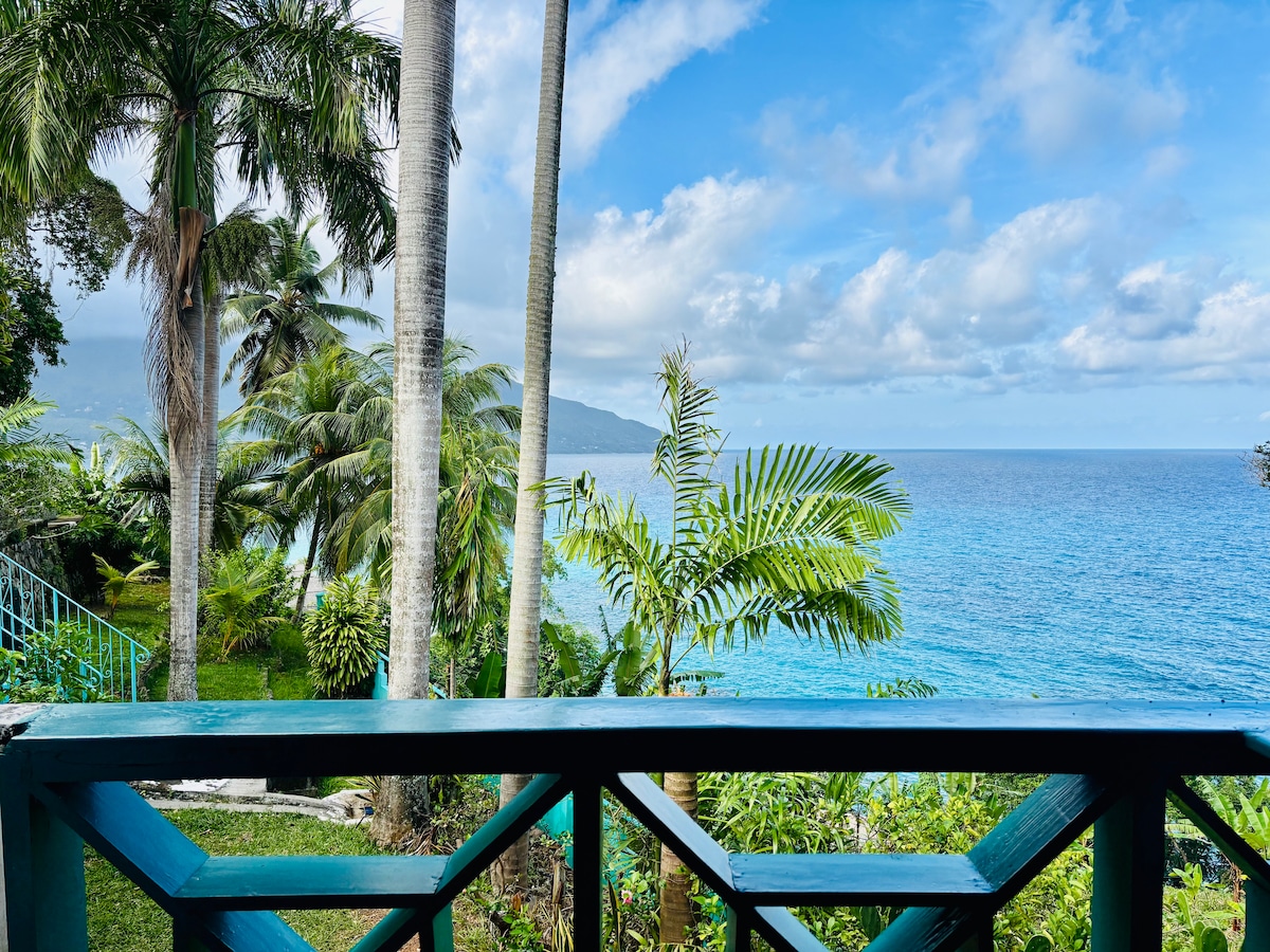 The Seahorse is a charming one-bedroom house designed and built by Raymond Dubuisson, a renowned artist on Praslin Island. It is situated in the most Idyllic area of Praslin. The Seahorse is a beachfront property with spectacular views. It has views of the nearby Ile Malice The Sisters, Coco and Felicité islands. The Villa is in a very tranquil surrounding and the area is renowed for it's snorkeling, large variety of beautiful fishes, dolphins, rays and Hawksbill turtles.