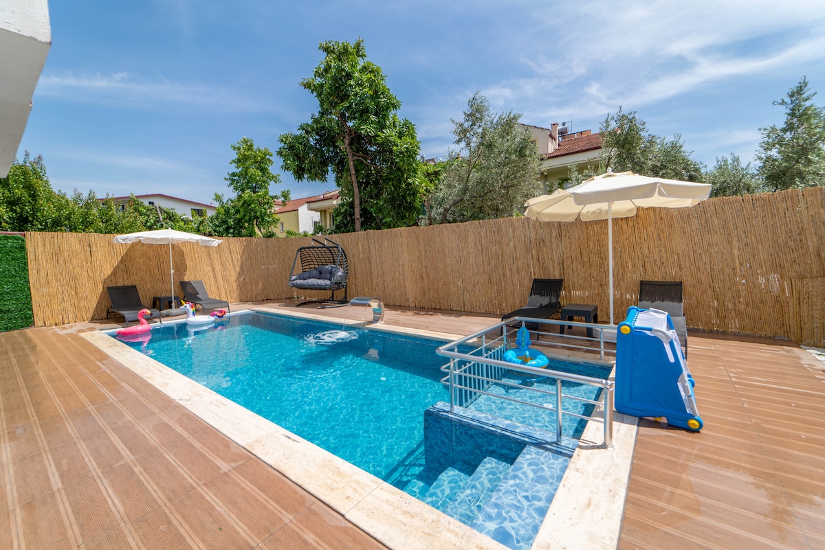 Fethiye'de yer alan Erva Apart Sizi bekliyor. Havuzu ve Bahçesi sadece size özeldir. Tatil evinde Havuz ve Jakuzi vardır. 2 yatak odası 2 tane çift kişilik yatak ve Bebek yatağı mevcuttur. 2 adet banyo tuvalet bulunmaktadır. Salonda elektronik açılır çift kişilik 2 adet kanepe bulunmaktadır. 4K TV,Bulaşık Makinesi,Fırın,Çamaşır Makinesi,Mikrodalga ve Buzdolabı içeren mutfak bulunmaktadir. Çalış Plajına yürüme mesafesi uzaklıktadır. Ölüdeniz'e çok yakından toplu taşıma araçları geçmektedir.