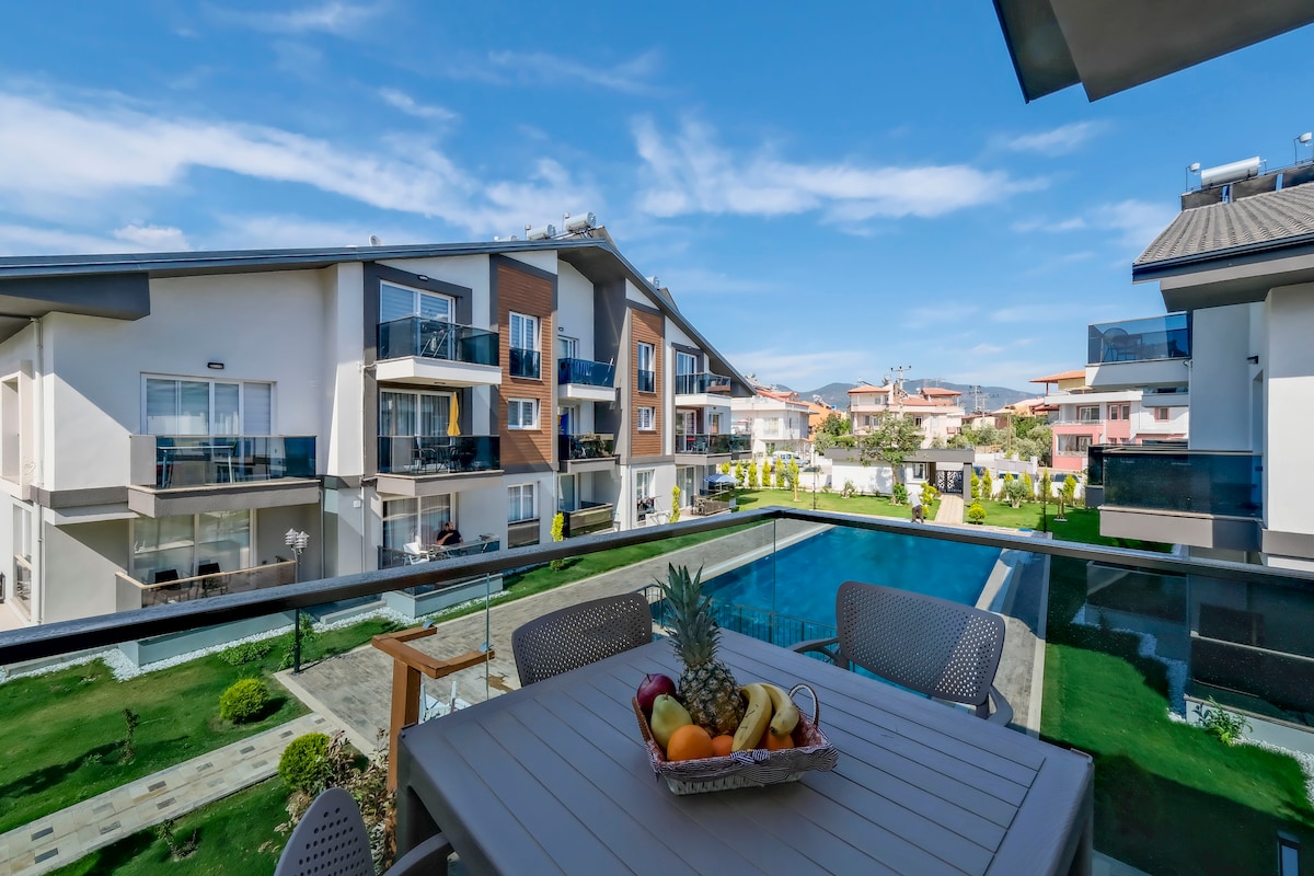 Ovacik escape: modern 3-bed apartment with mountain views. Relax by the huge shared pool (kids' pool too!). Near Hisaronu, Oludeniz, Fethiye. Peaceful stay for families.
