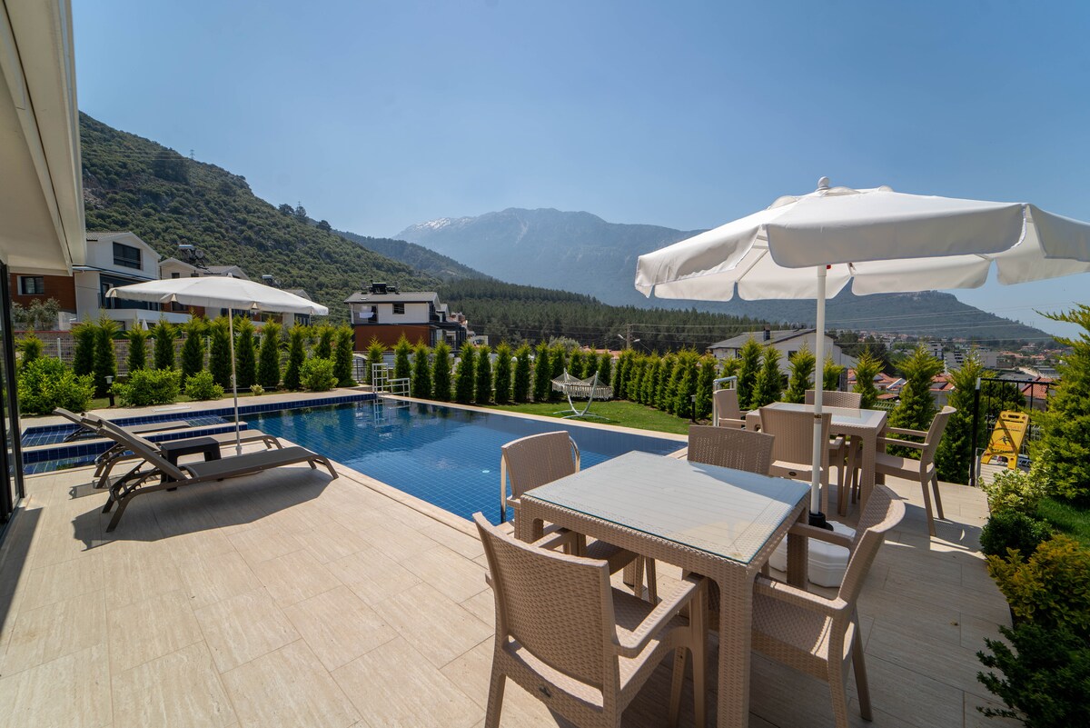 Bu ev, muhteşem dağ manzaraları ve doğasıyla sizi büyüleyecek olan Fethiye Ölüdenizdedir.Dünyaca ünlü Ölüdeniz plajına 4 km mesafededir ve Hisaronu eglence alanina yuruyerek 10 dkdir.Ev 3 yatak odali ve herbirinin kendi banyosu vardir. Çati katinda jakuzi ve spor salonu mevcuttur.Genis bahçemizde 8 m boylarinda 1 havuzumuz vardir.Ayrıca bir mangal ve cocuklar icin trambolin bulunmaktadır.Evde sınırsız internet erişimi vardir.