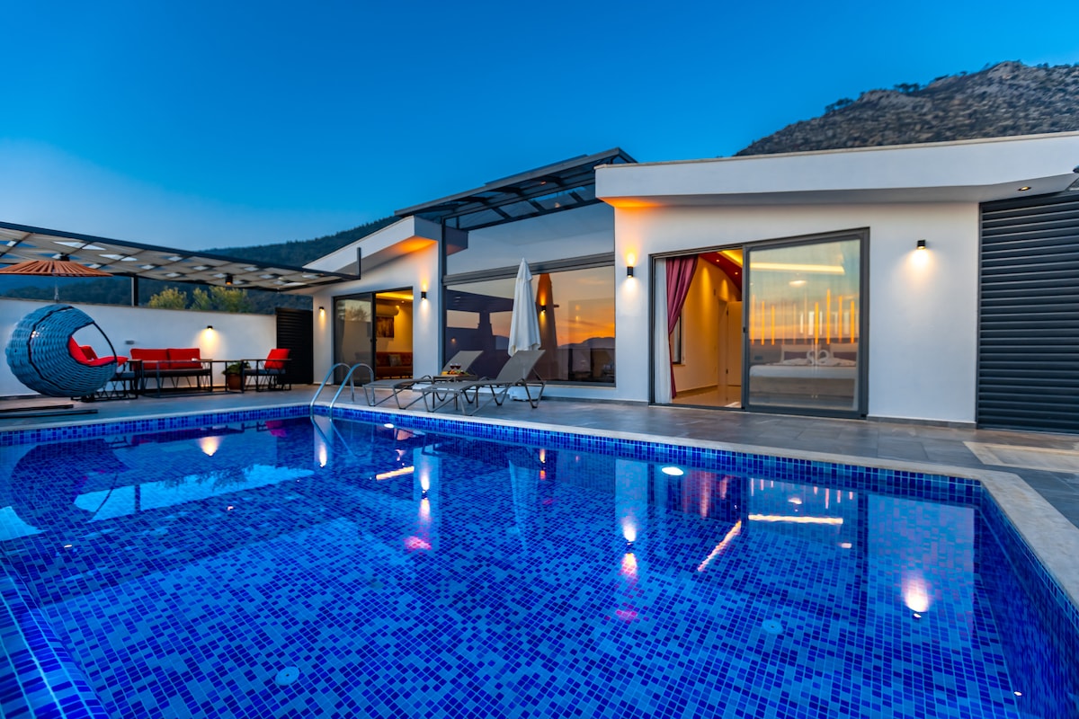 Fethiye Ölüdeniz'de Yeni Ultra Lüks "La Marbella Villa" Spectacular modern luxury villa, newly built, in a privileged enclave of Fethiye, in the heart of the lush green Hisaronu and overlooking the breathtaking Babadag mountain. La Marbella Villa is a nod to the beautiful homes in Southern Spain and is an indulgence in luxury. We have designed our villa with the most high-end and luxurious amenities for all to feel the most comfortable and have the holiday of your dreams.