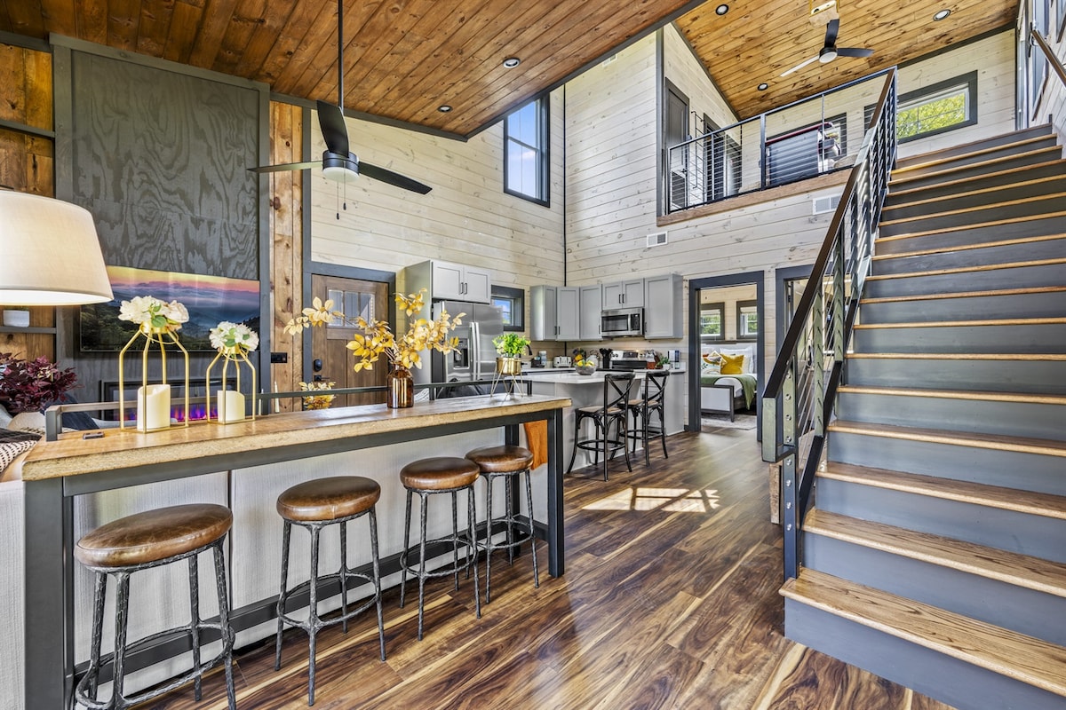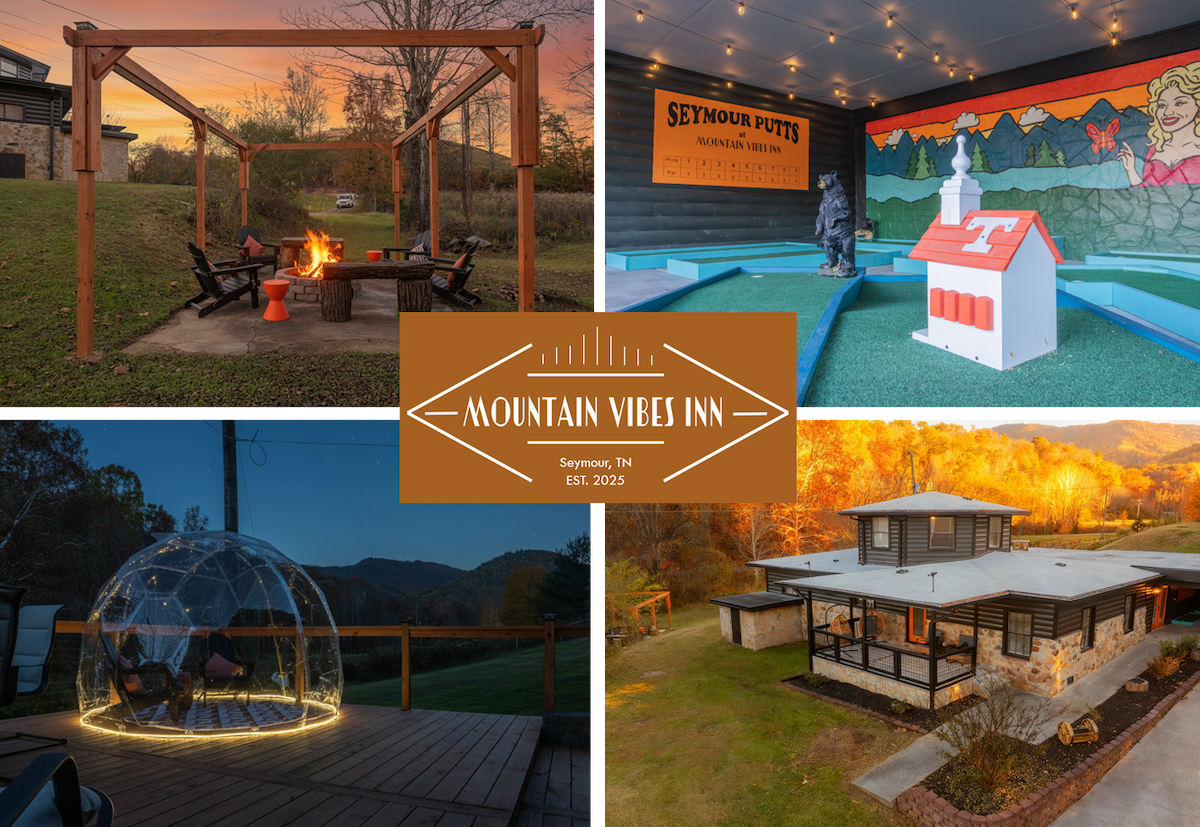 Nestled between Knoxville and the Smokies, this modern A-Frame is a dream getaway! Relax in the soaring living room with a massive stone fireplace, or challenge friends in the game room featuring ping pong and boss toss. The fully stocked chef’s kitchen is perfect for home-cooked meals, and the private hot tub is waiting for you after a long day of adventures. Enjoy your morning coffee on the balcony with forest views, then explore Pigeon Forge!