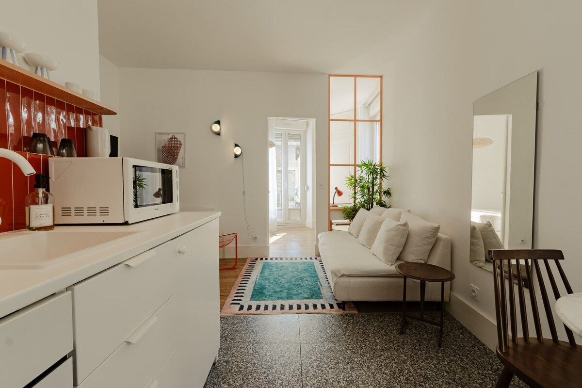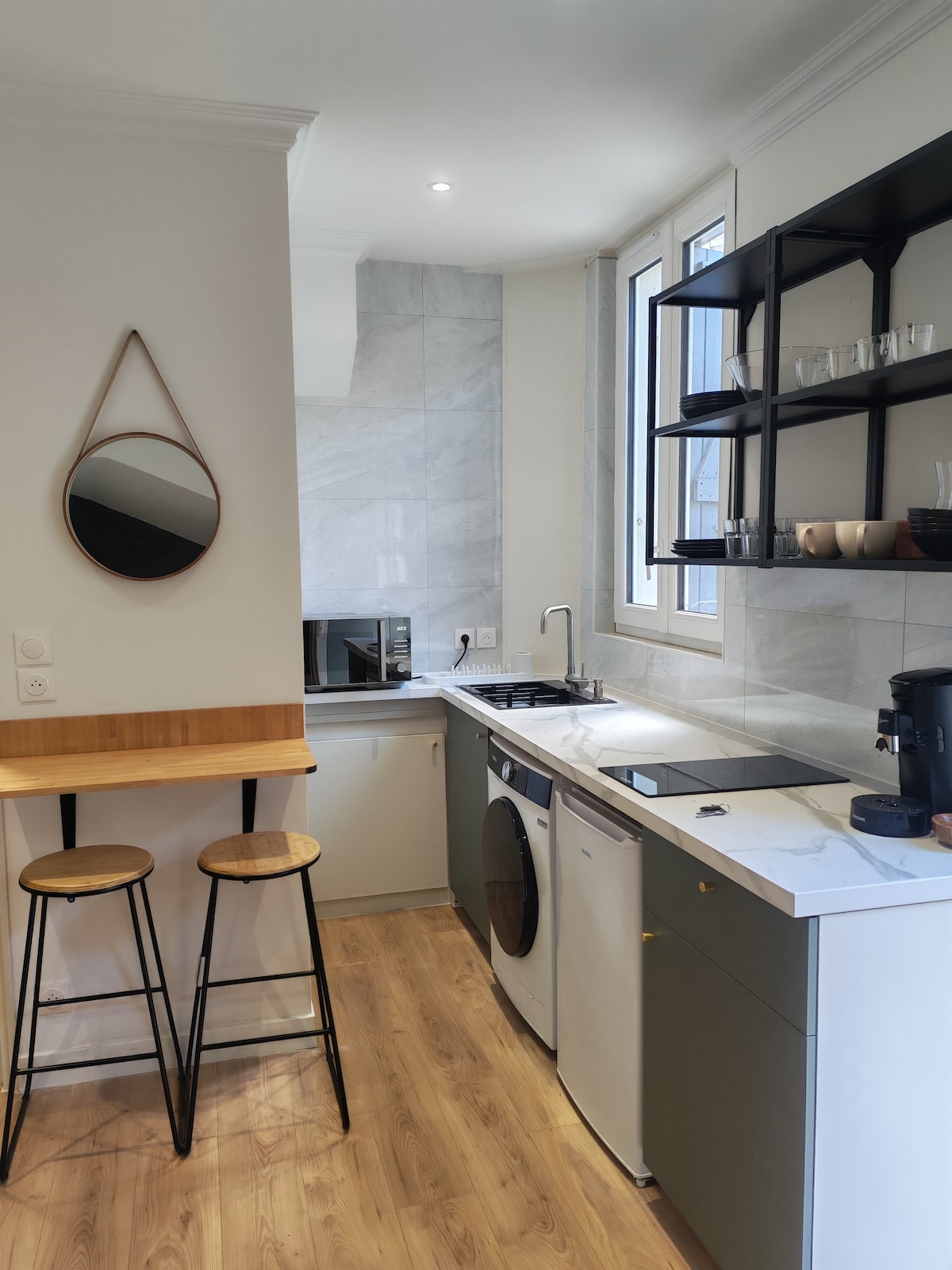 Studio lumineux entièrement refait à neuf ! ☀️ Logement à deux pas de la gare, proche de l'hyper-centre et de toutes les commodités. Immeuble avec ascenseur, calme, récemment rénové et totalement sécurisé. Entièrement équipé : lit queen size, machine à laver, lave vaisselle, machine à café, four, bouilloire, grille pain, sèche cheveux, fer à repasser, ...