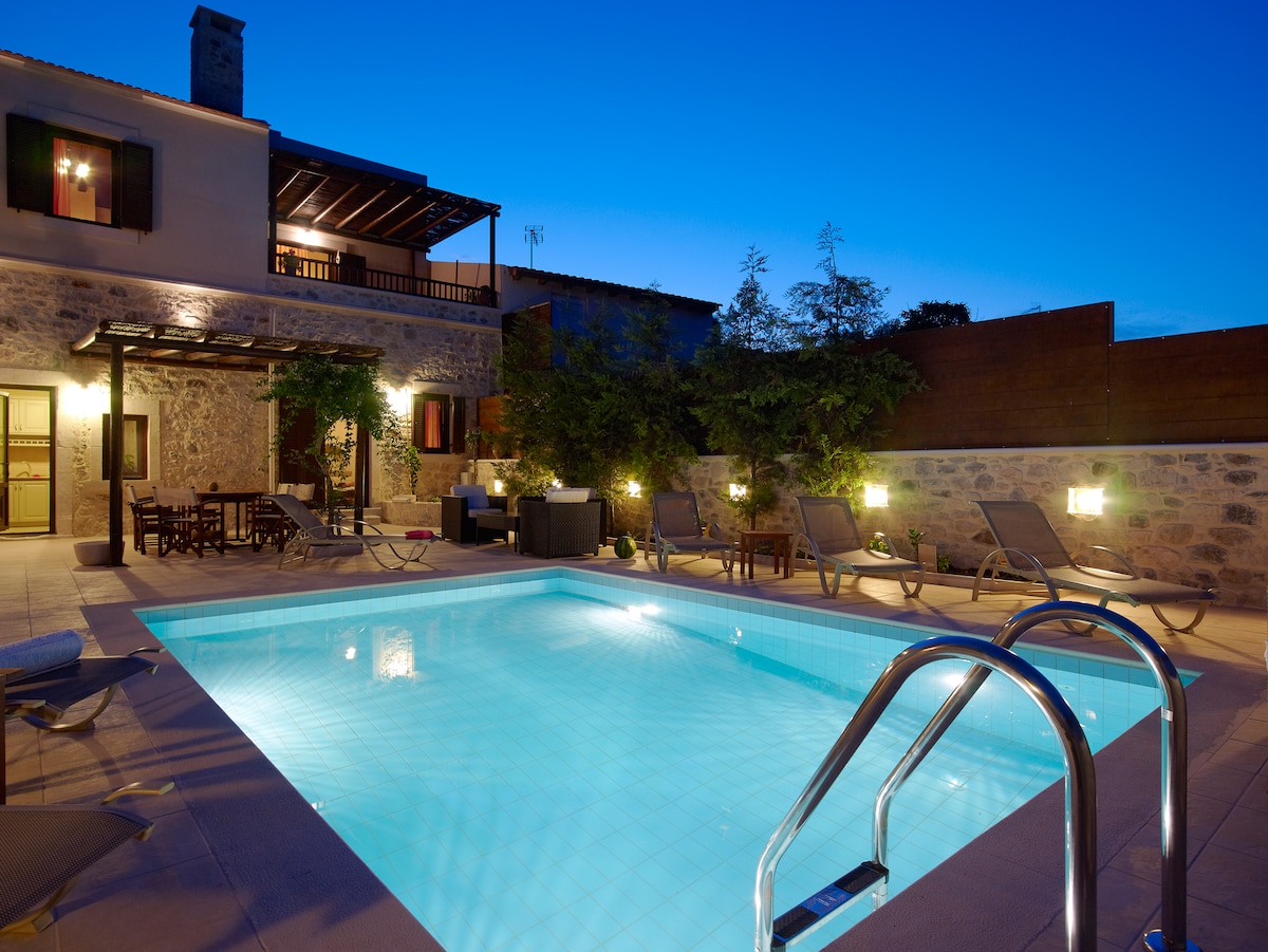 Ζήστε στιγμές χαλάρωσης στην ιδιωτική πισίνα και χαλαρώστε απολαμβάνοντας τη μαγευτική θέα, με τον συνδυασμό χρωμάτων της κρητικής γης. Η βλάστηση των ελιών και των αμπελιών, το γκρι των βουνών και το μπλε της θάλασσας θα σας μαγέψουν. Μέσα στο νέο καταφύγιο που δημιουργήθηκε για να προσφέρει όλες τις ανέσεις στον επισκέπτη, αλλά και στην τεράστια αυλή, νιώστε χαλάρωση και άνεση. Αφεθείτε στο υδρομασάζ απολαμβάνοντας παγωμένο το οικογενειακό κρασί που προσφέρουμε για δώρο στους επισκέπτες μας.