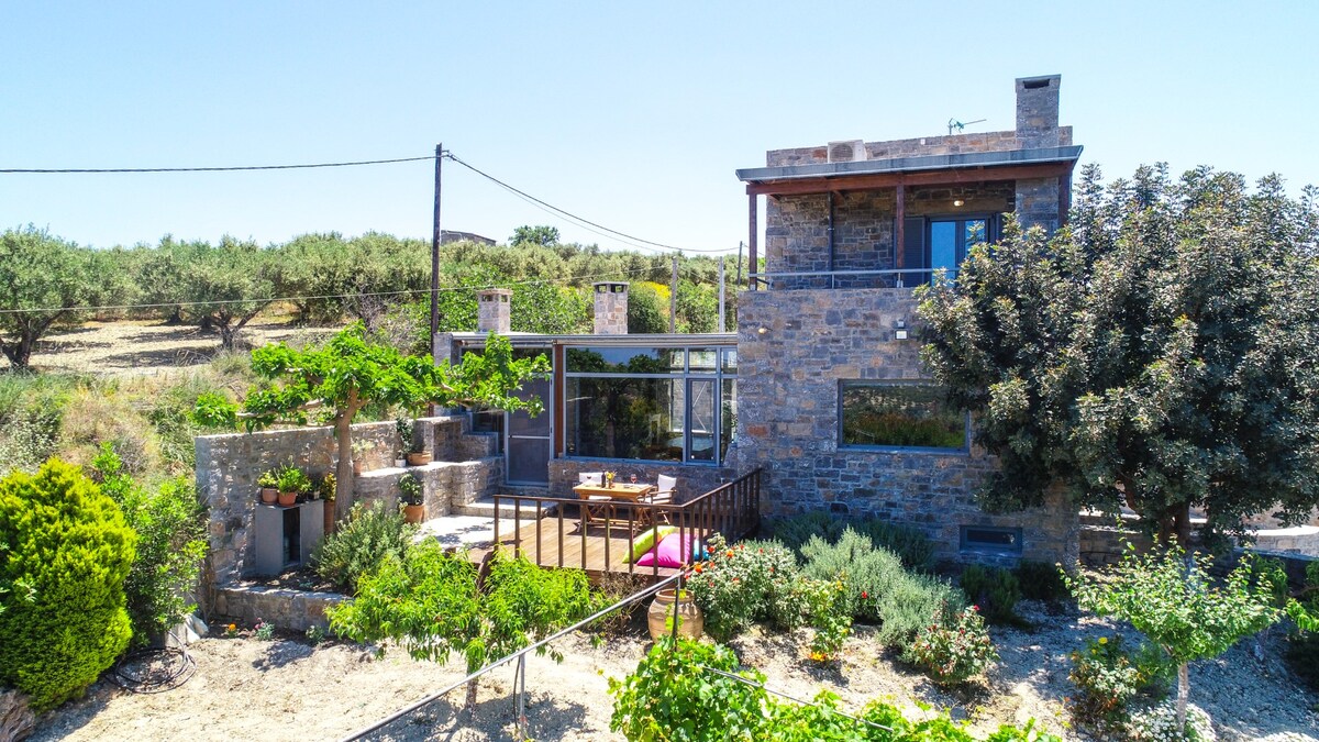 The house is a recently renovated house with eco friendly materials and has all modern comforts. It has 1 double bed , a kitchen and a bathroom. The house has its own private yard. Located in a family agrotouristic organic farm with olive trees, herbs and vegetables. You can participate at the farms actrivities.We provaide cookig class,spinework theapy. There is a shared terrace and an mini pool. It is also close to beautiful beaches, antiquities such as Knossos and the airport [28'],
