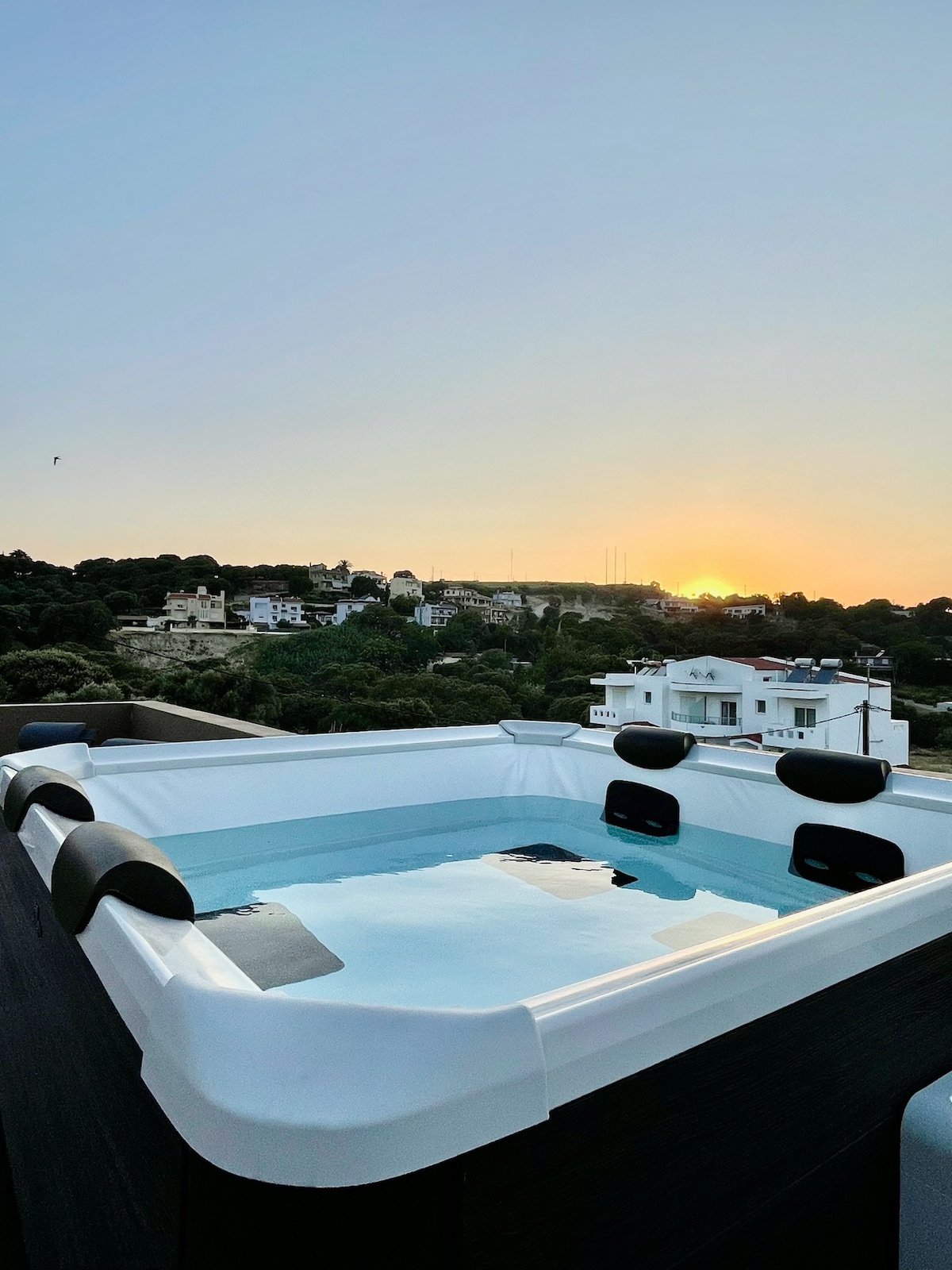 Sevasti Seaview Suite is a luxury, cozy and modern apartment in Koskinou of Rhodes, made to offer a unique and relaxed living to guests' holidays, providing a unique view of the sea and the city. It consists of high-quality materials, minimalist aesthetics, comfortable design and modern & peacefull decoration throughout the apartment. Inside Jacuzzi facilities with the ideal view of the sea makes it the perfect place to destress and rejuvenate while on vacation.