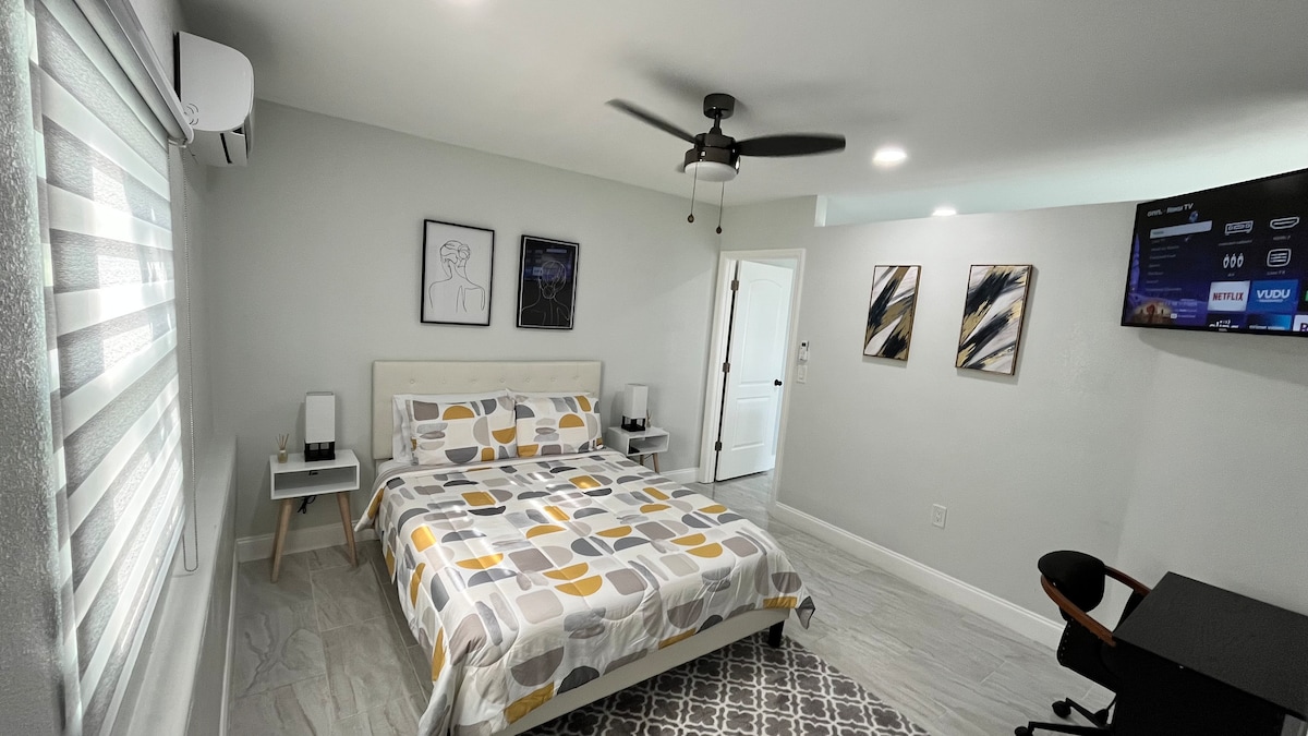 Welcome to our charming efficiency just a short 20-minute drive from the beach! This cozy and modern space is perfect for solo adventurers or couples seeking a peaceful getaway near the ocean. Featuring a comfortable king-sized bed, or 2 Twin beds a well equipped kitchen, and a private bathroom. Kick back and relax in the cozy living. Conveniently located, 7 min at the Airport and all the biggest mall around the area We strive to make your stay as comfortable as possible.