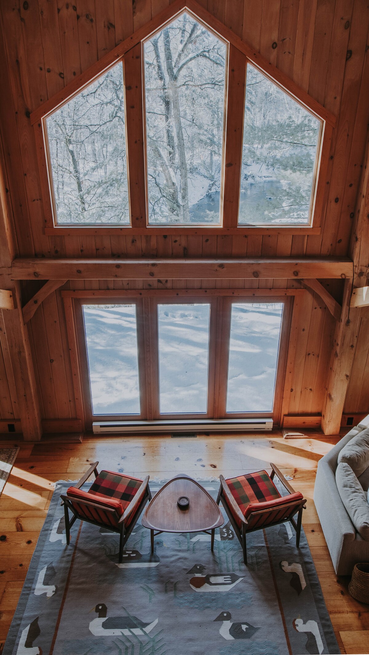 Perched high on the banks of the Apple River, this timber-framed cabin offers spectacular views of the river and wildlife. We’ve spotted bald eagles, deer, ducks, geese, great blue heron, golden eagle, fox, beaver, bear and wild turkey from the comfort of the cabin. One hour from the Twin Cities, it’s the perfect cabin getaway for couples, friends, and families. Located on private acreage in Amery, WI you will be near rivers, lakes, hiking trails and all that Northern Wisconsin has to offer.
