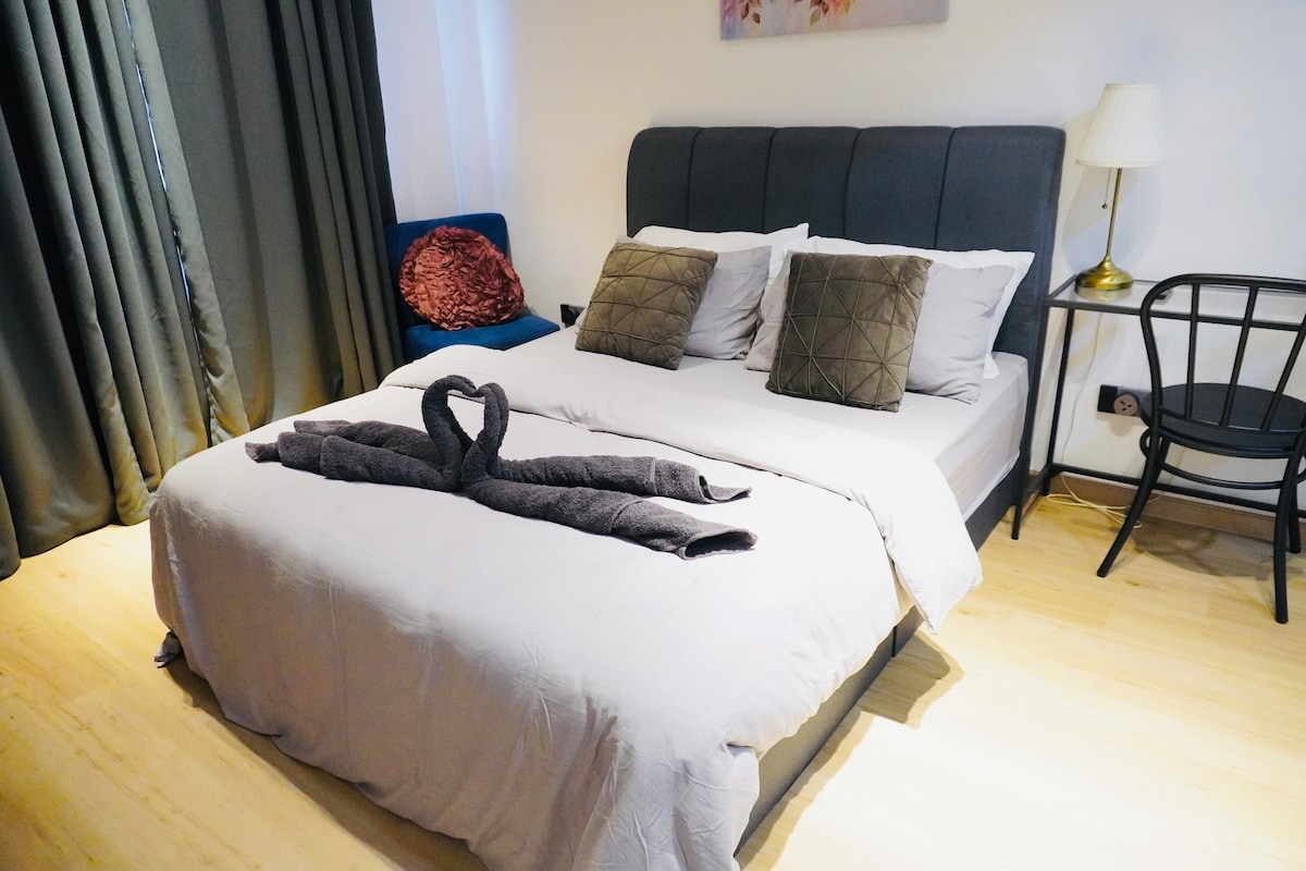 A Muji-style studio, bathroom apartment with King Size double beds. Suitable for 1-2 guests. The bathroom provides hot and cold water for a relaxing shower experience. Facilities include: Pots, pans, utensils. Water Dispenser Body wash, shampoo, hand wash, laundry liquid, and fabric softener Refrigerator, microwave, kettle, rice cooker, washer/dryer 55" SMART TV with NETFLIX, hairdryer, iron, and ironing board Water filter Free high-speed Wi-Fi (500 Mbps) 1 parking space