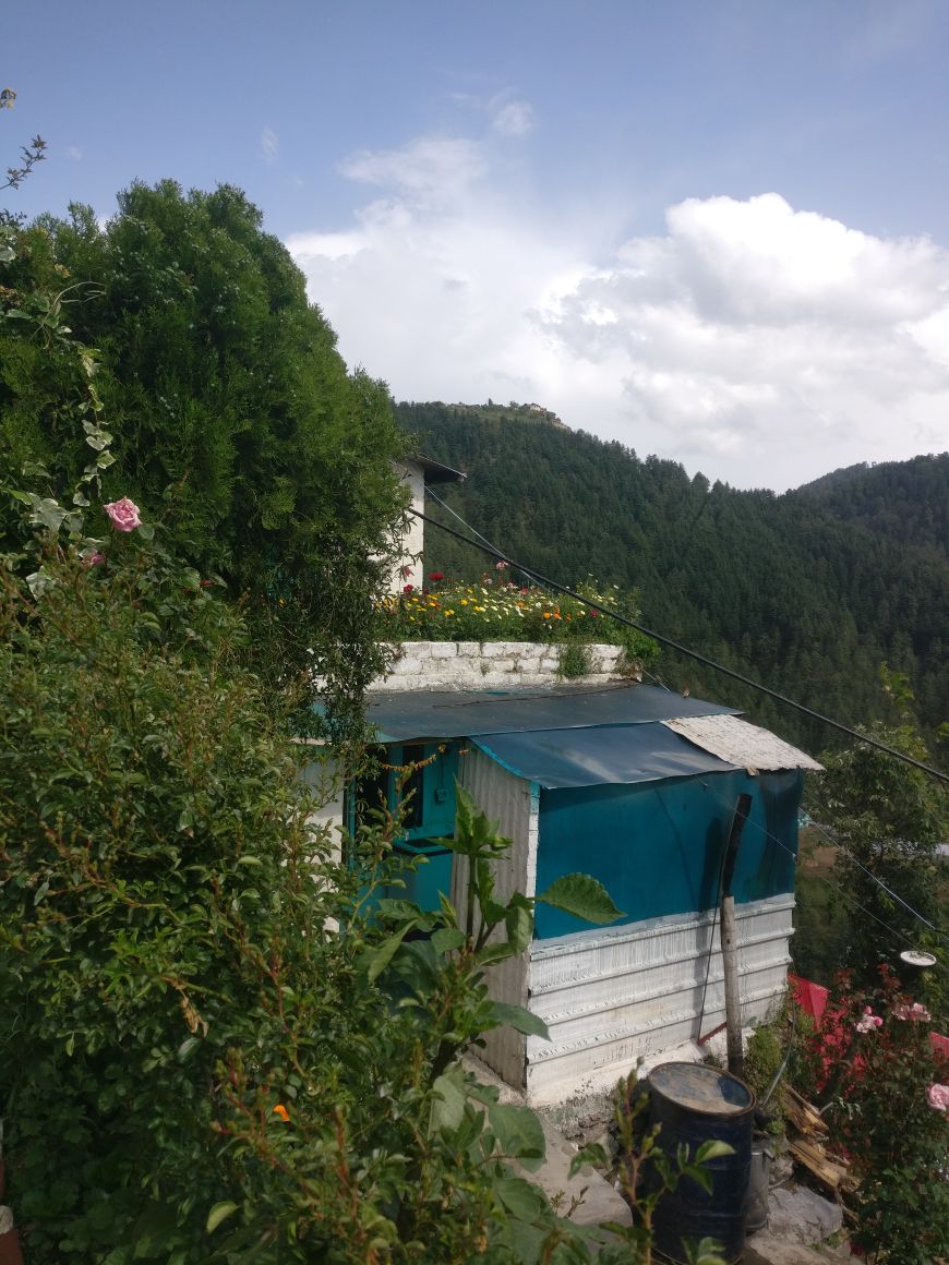 It is small one mud room terraced property in an apple orchard ..we have a care taker who can provide you with the basic needs ..you can pluck the seasonal vegetables ,fruits and do your own basic cooking or get it made by the family ...the care taker can guide you to forest walks ..make a bonfire for you ..etc..The sun is from sunrise to sunset ..Beautiful garden ..flowers ..