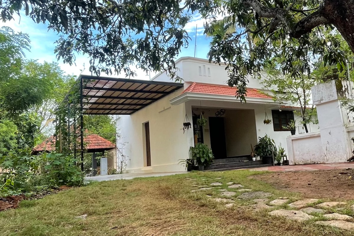 Welcome to Padnamabham, your serene retreat in Trivandrum! Just 5 minutes from Trivandrum Airport and Padmanabha Swamy Temple, and 20 minutes from Kovalam Beach, our fully furnished 3 BHK villa is ideal for long stays. Enjoy modern amenities, including a cozy living area with a 55-inch TV, high-speed Wi-Fi, and a fully equipped kitchen. Relax on the spacious balcony surrounded by greenery, perfect for unwinding after exploring Trivandrum's best attractions.
