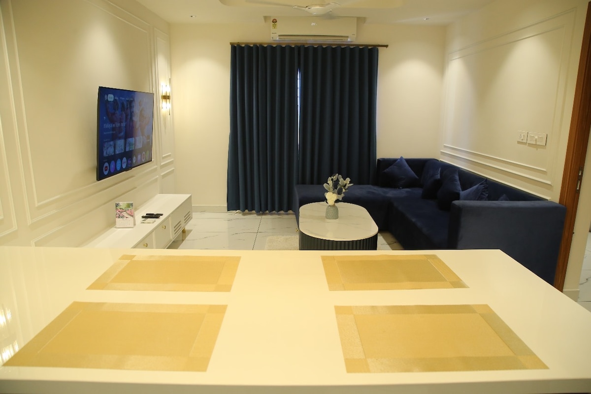 Your family will be close to the International Airport of Trivandrum. Travancore Mall is just across. Beach & Sightseeing close by. KIMS Hospital just a short ride away. You can easily explore from here. Enjoy bathrooms with instant hot water, fully equipped kitchen with freezer, fridge, dishwasher, oven, microwave, water purifier and a work area fitted with washing machine and dryer. AC available in all rooms.