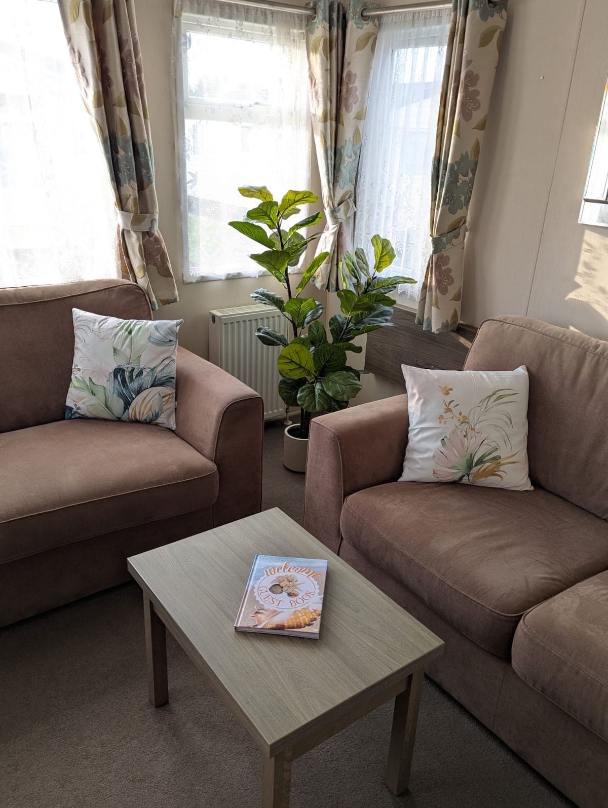 This is a fully furnished mobile home in the grounds of a detached cottage on the outskirts of Titchfield, which is half-way between Portsmouth and Southampton. There is space to park a car off the road. There is a local village centre and more shops at larger local centres in Fareham and Whiteley. There is no washing machine or dryer in the property but guests can use the facilities in the main house.